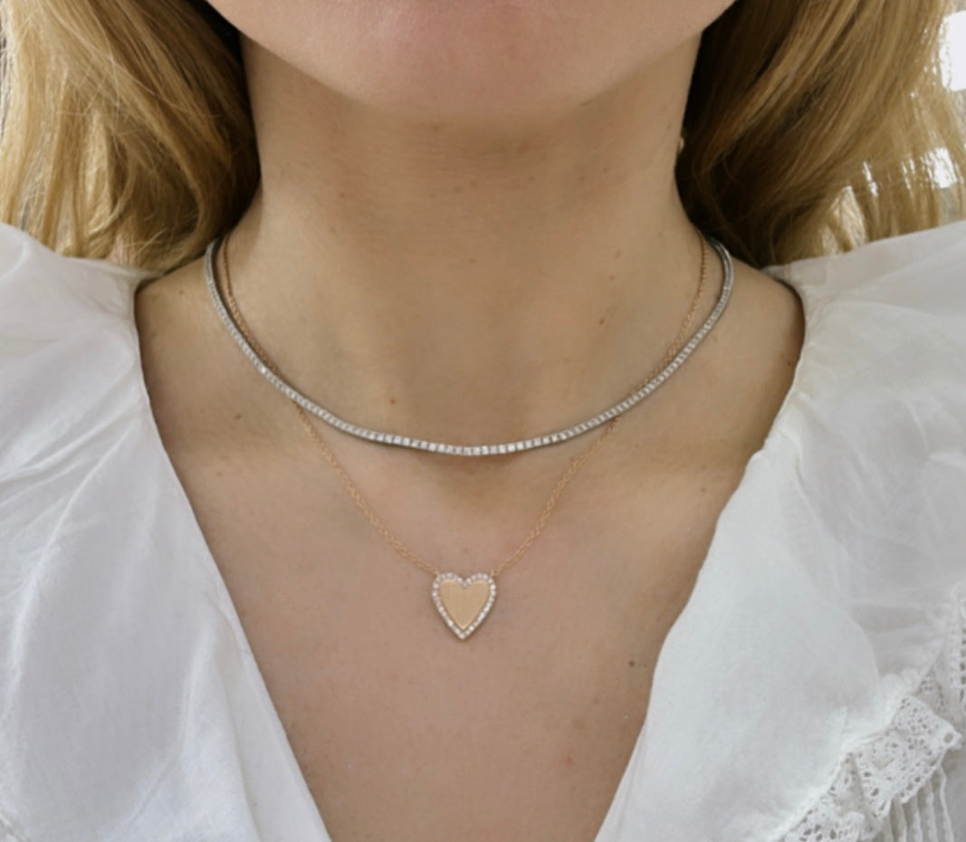 Fall in love with our stunning 0.18ct tw heart shaped pave edge diamond pendant necklace. The pave edge design adds a touch of elegance to the heart shaped diamond, creating a timeless and beautiful piece. Perfect for any occasion, this necklace will make you feel glamorous and confident.