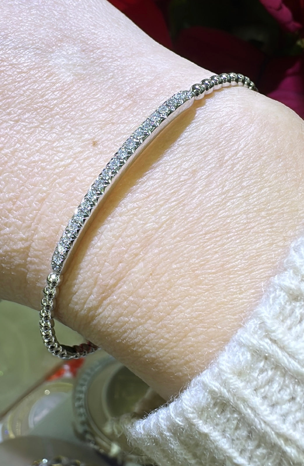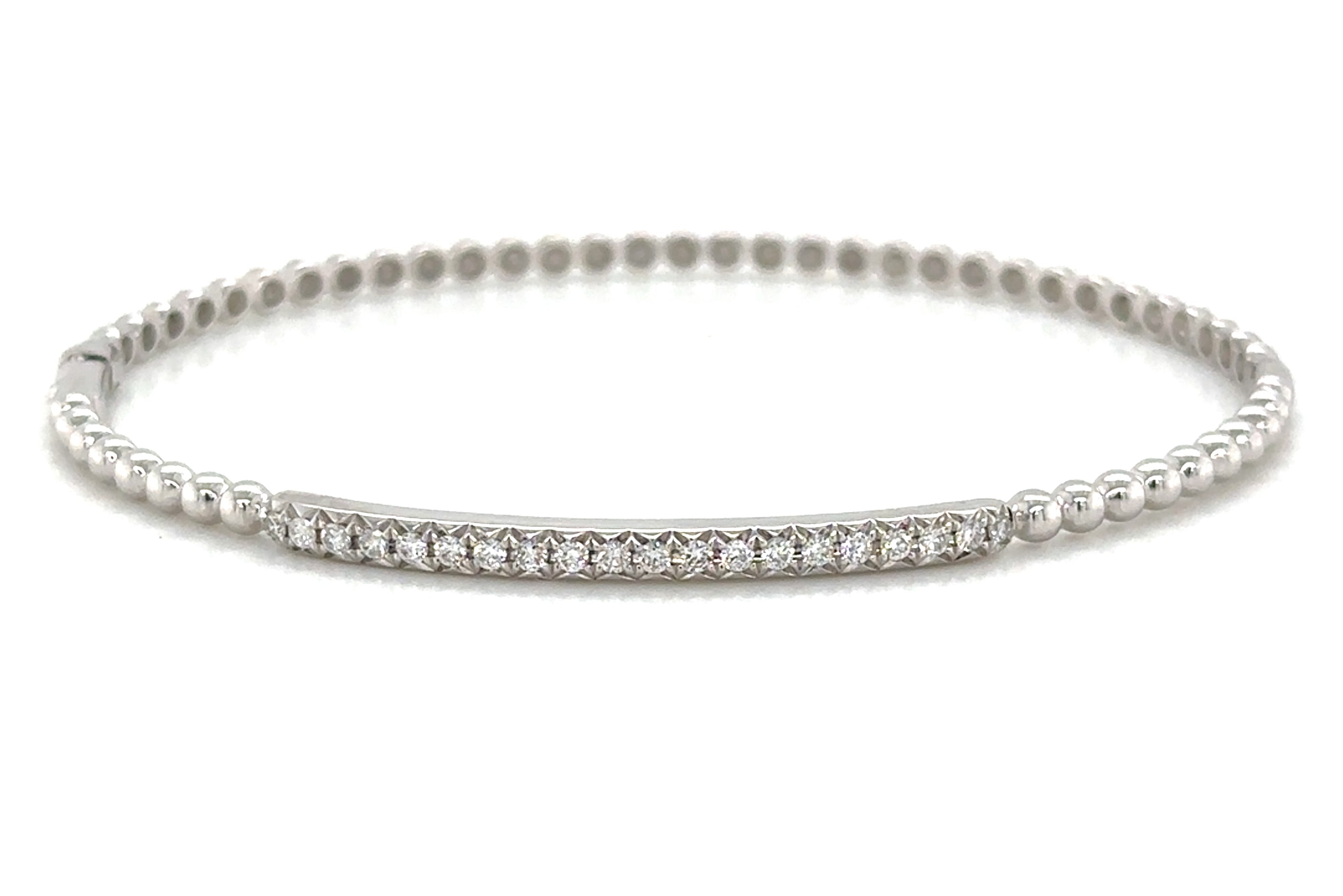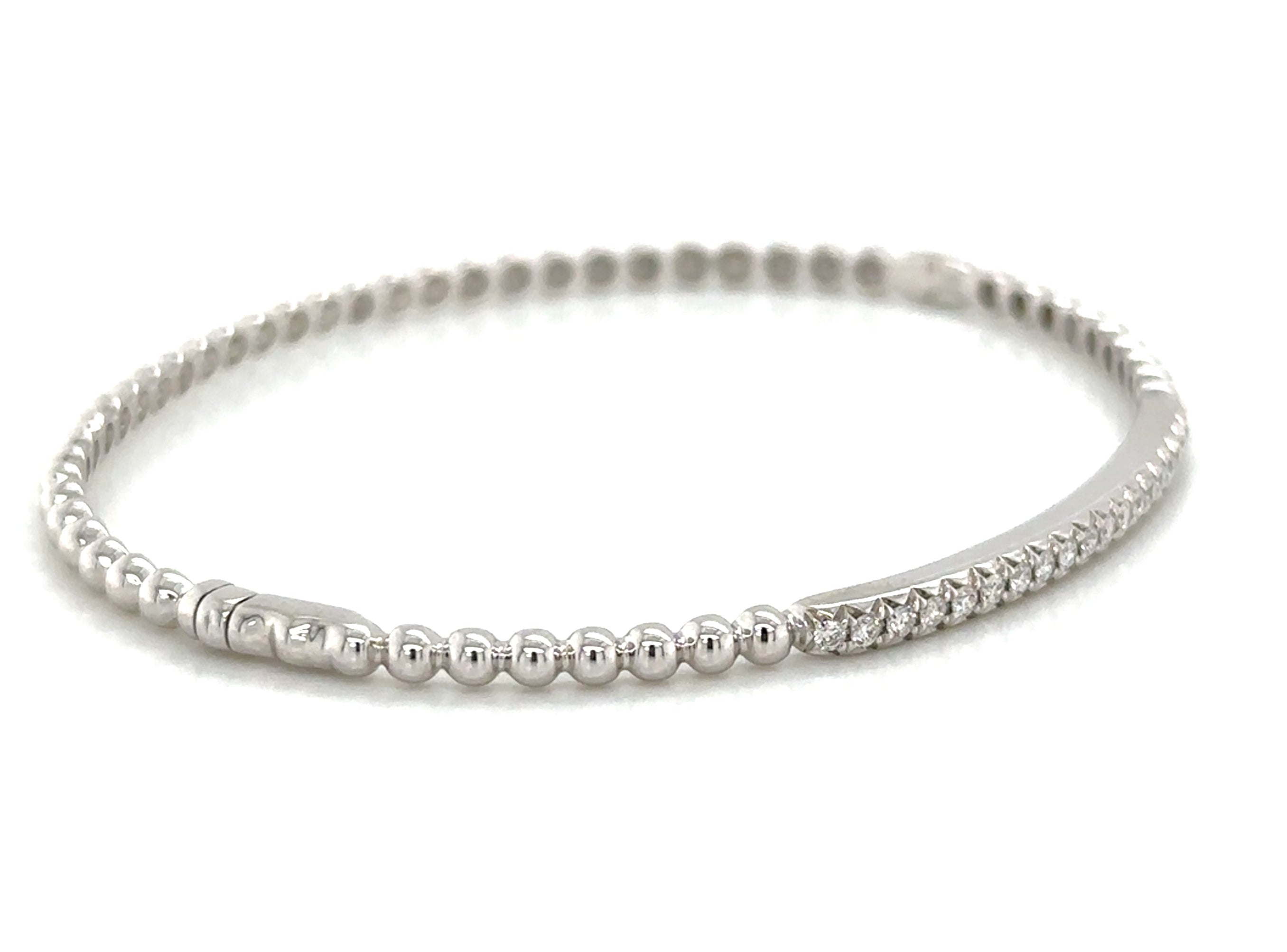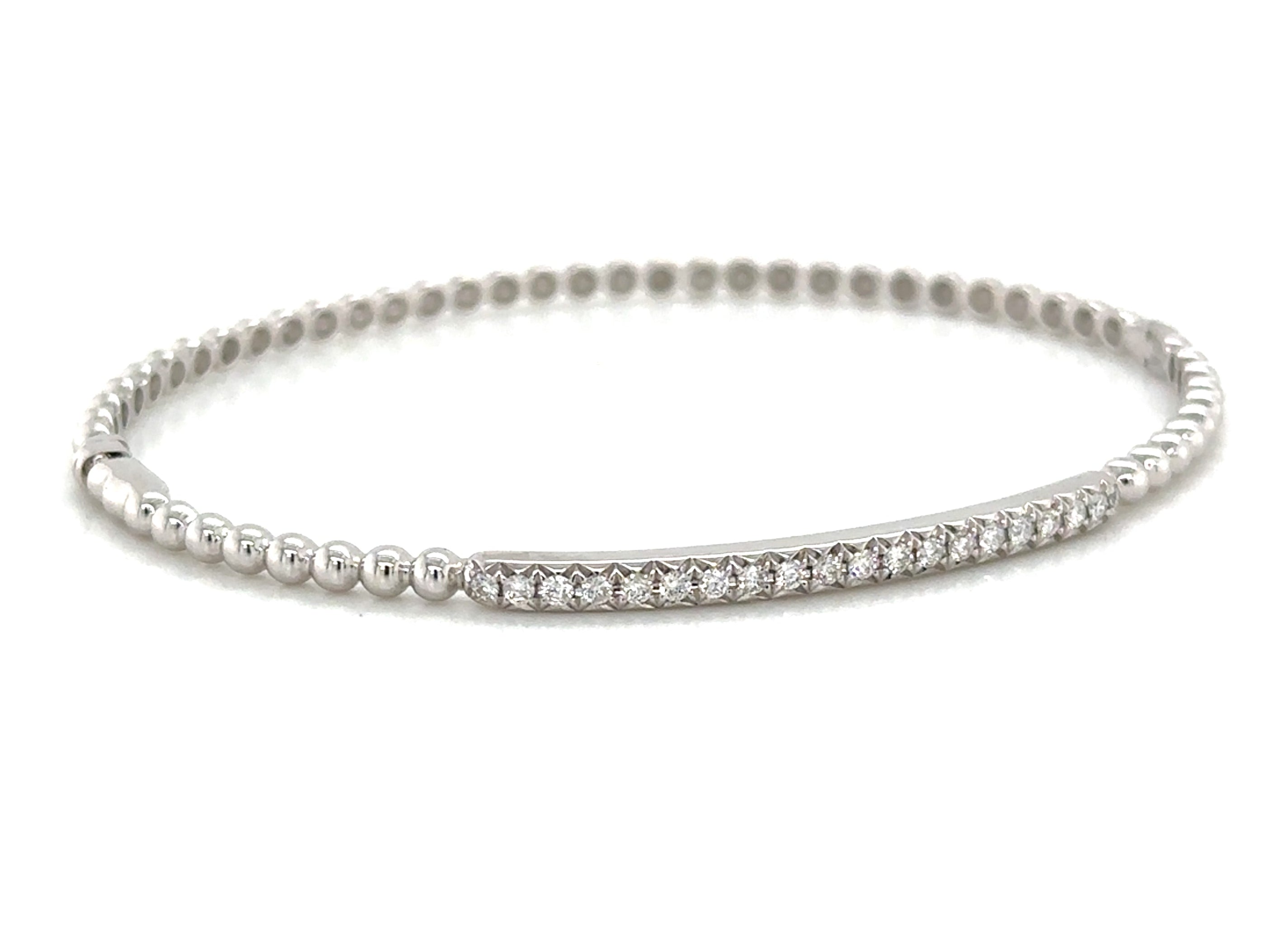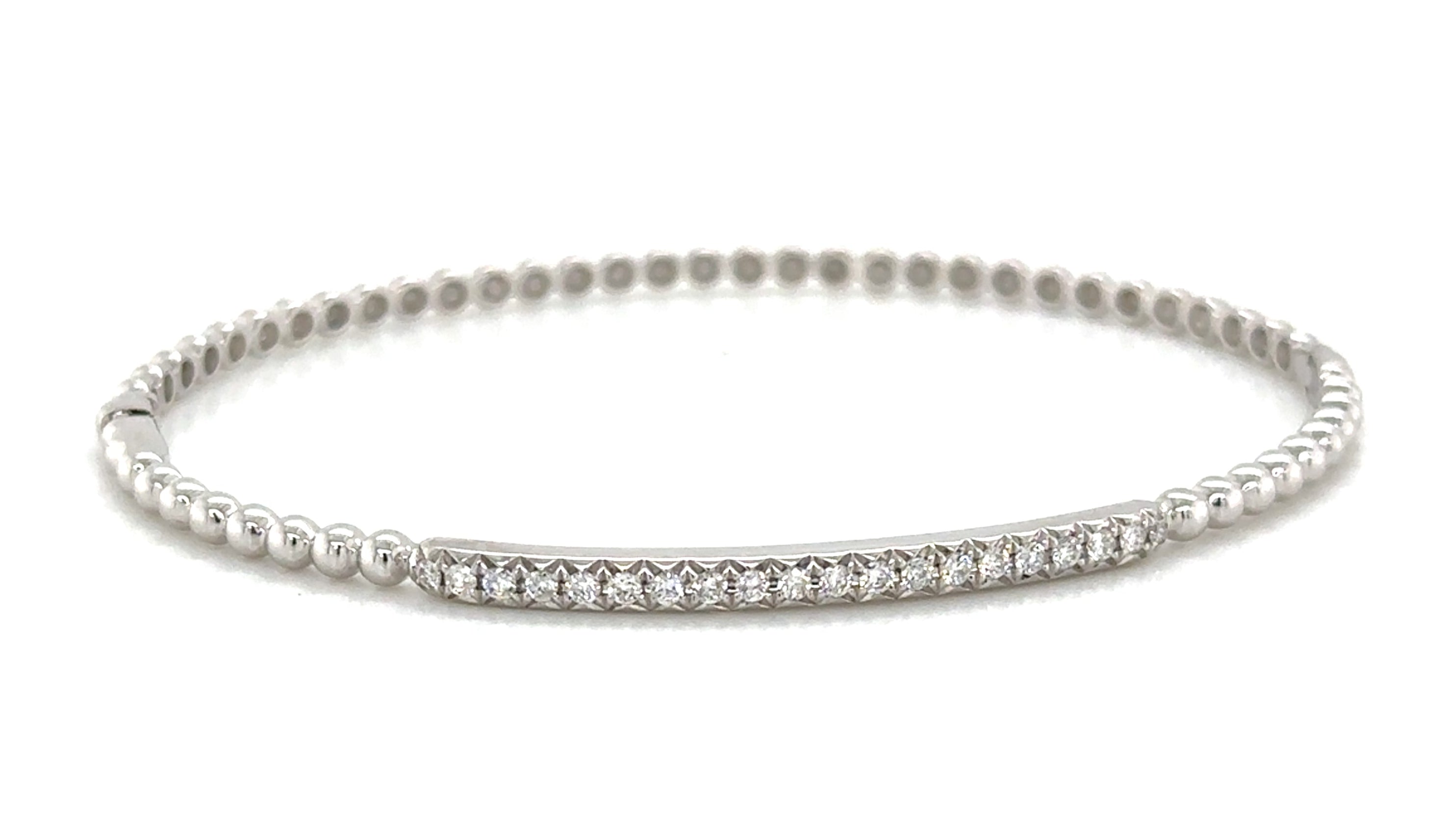 Indulge in a touch of luxury with our 0.29ct tw diamond beaded gold bangle bracelet. This exquisite piece features sparkling diamonds intricately woven into a stunning gold bangle.