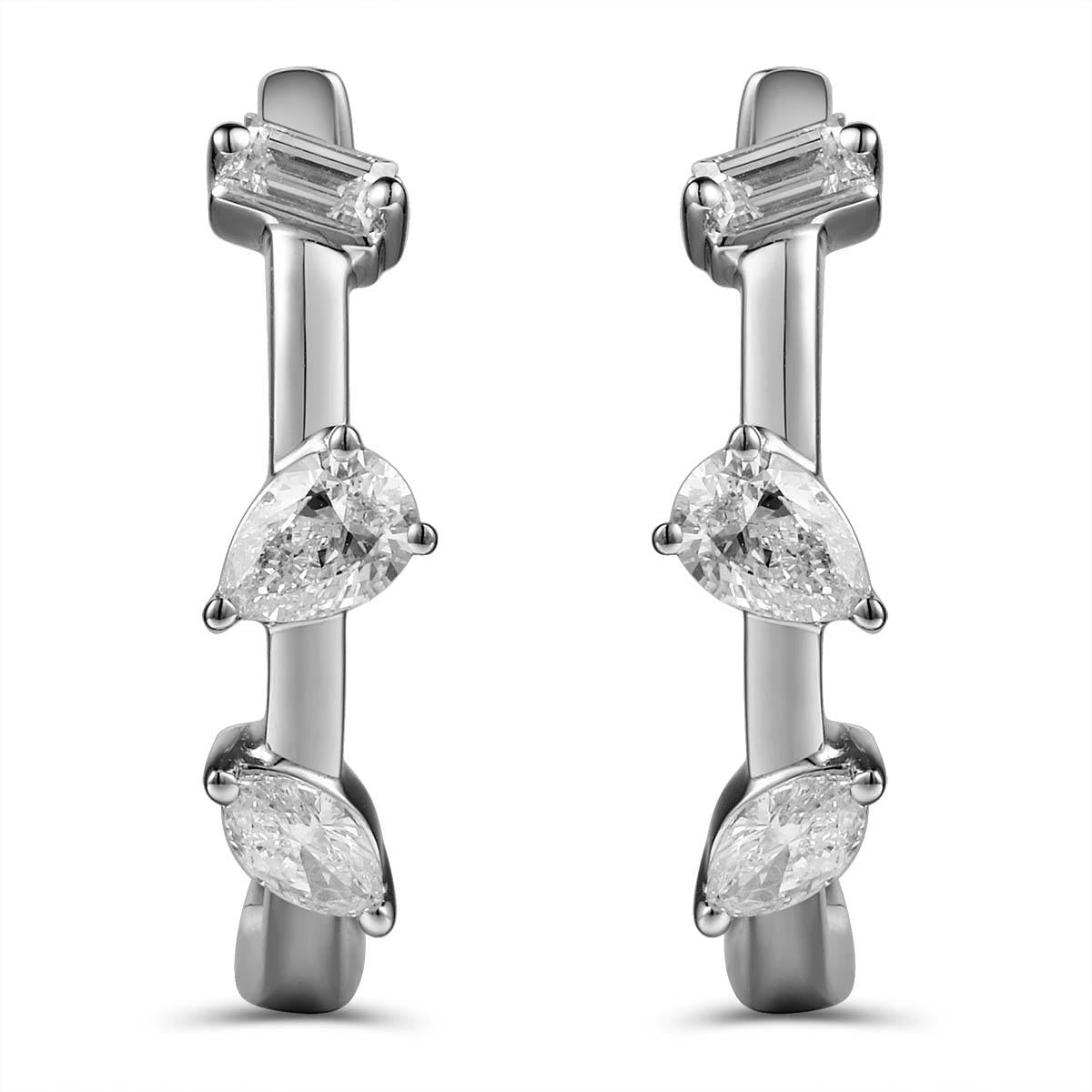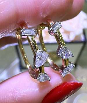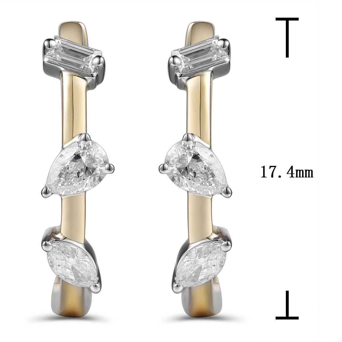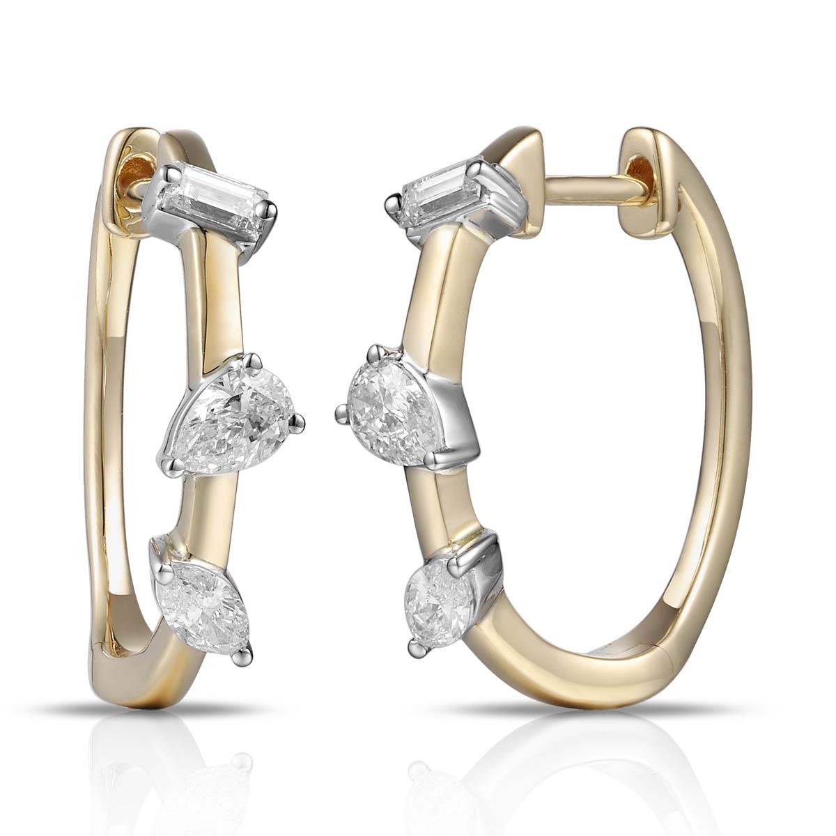 Discover the perfect blend of elegance and edge with our 0.49ct t.w. mixed shape diamond hoop fancy earrings. Featuring a unique mix of diamond shapes, these stunning earrings will add a touch of sophistication to any outfit. Elevate your style and make a statement with these sparkling hoops.