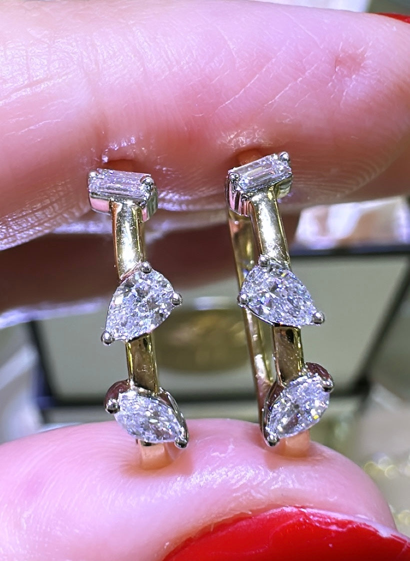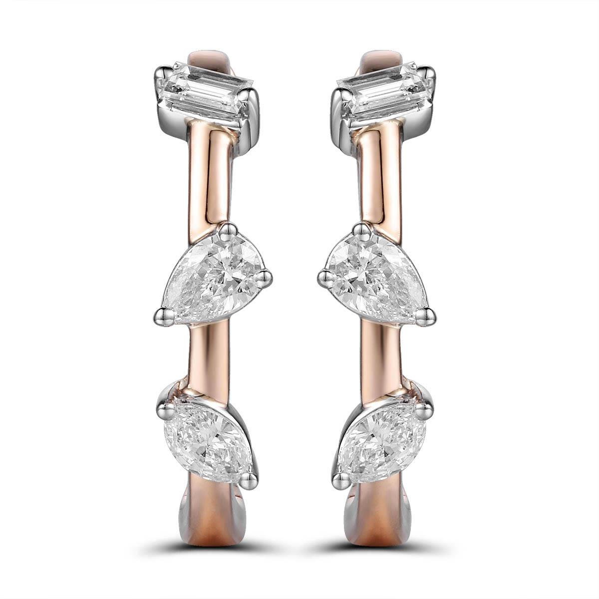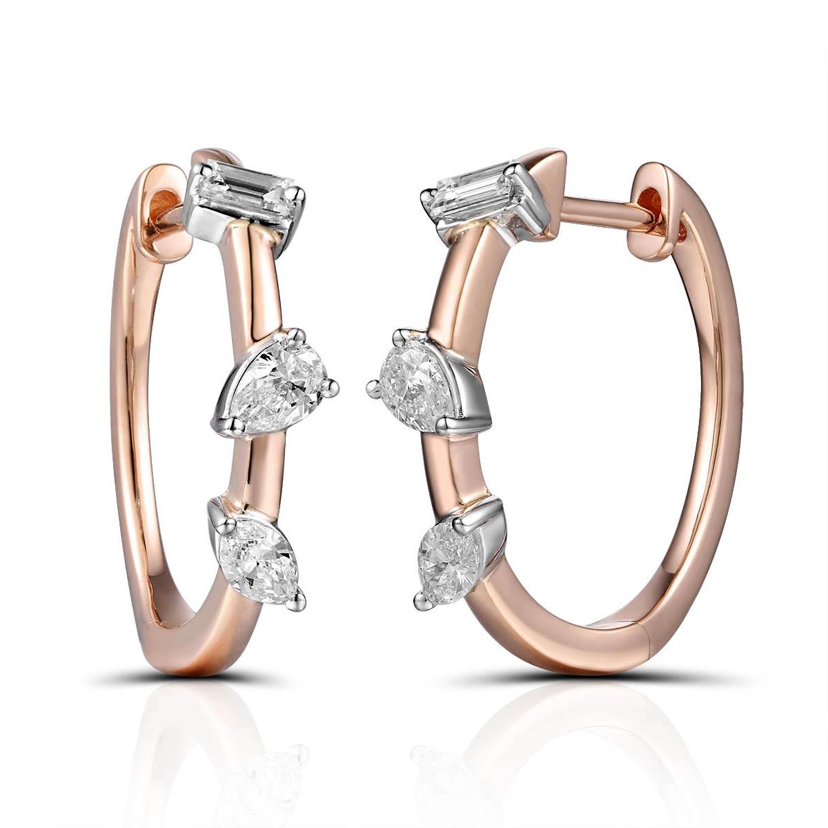 Discover the perfect blend of elegance and edge with our 0.49ct t.w. mixed shape diamond hoop fancy earrings. Featuring a unique mix of diamond shapes, these stunning earrings will add a touch of sophistication to any outfit. Elevate your style and make a statement with these sparkling hoops.