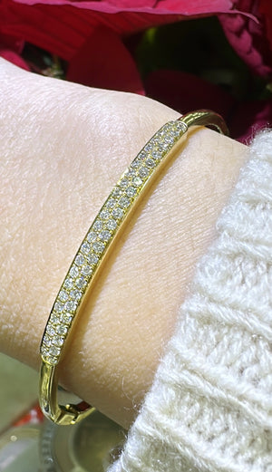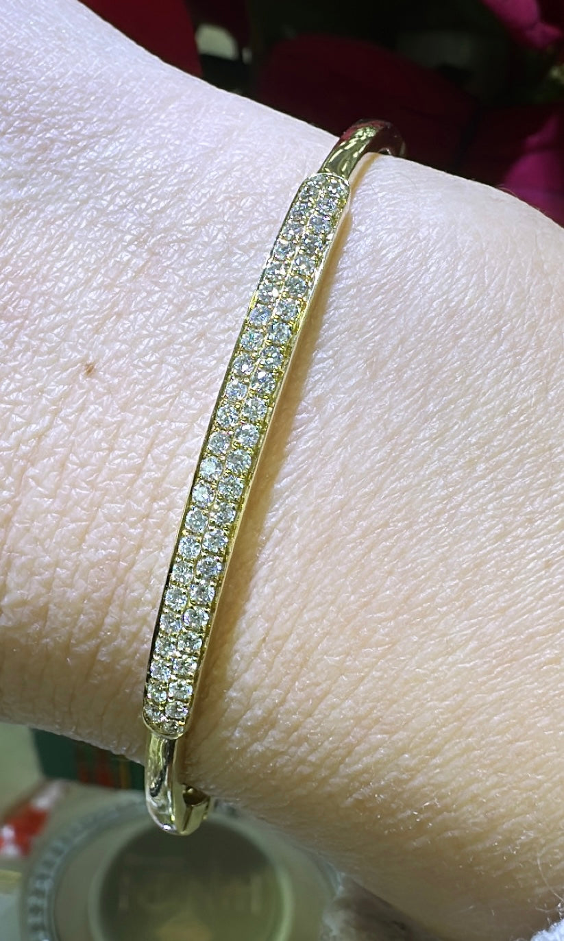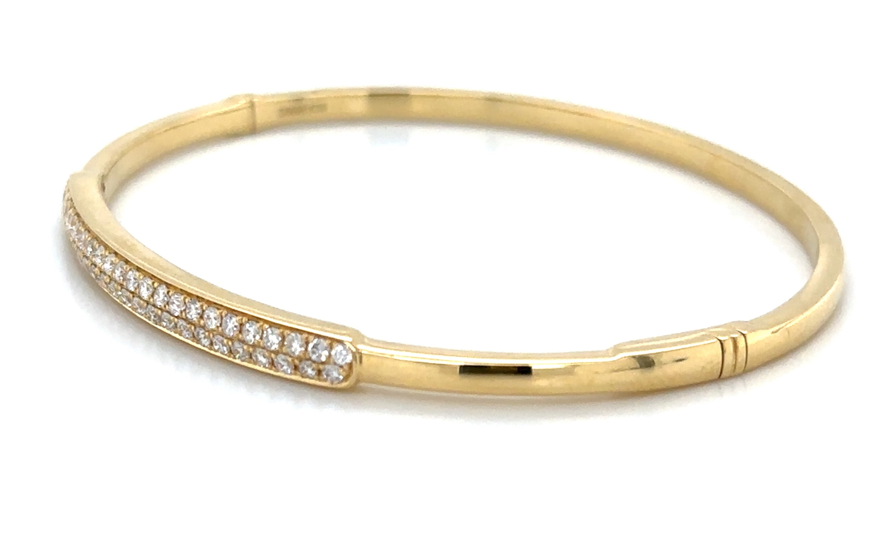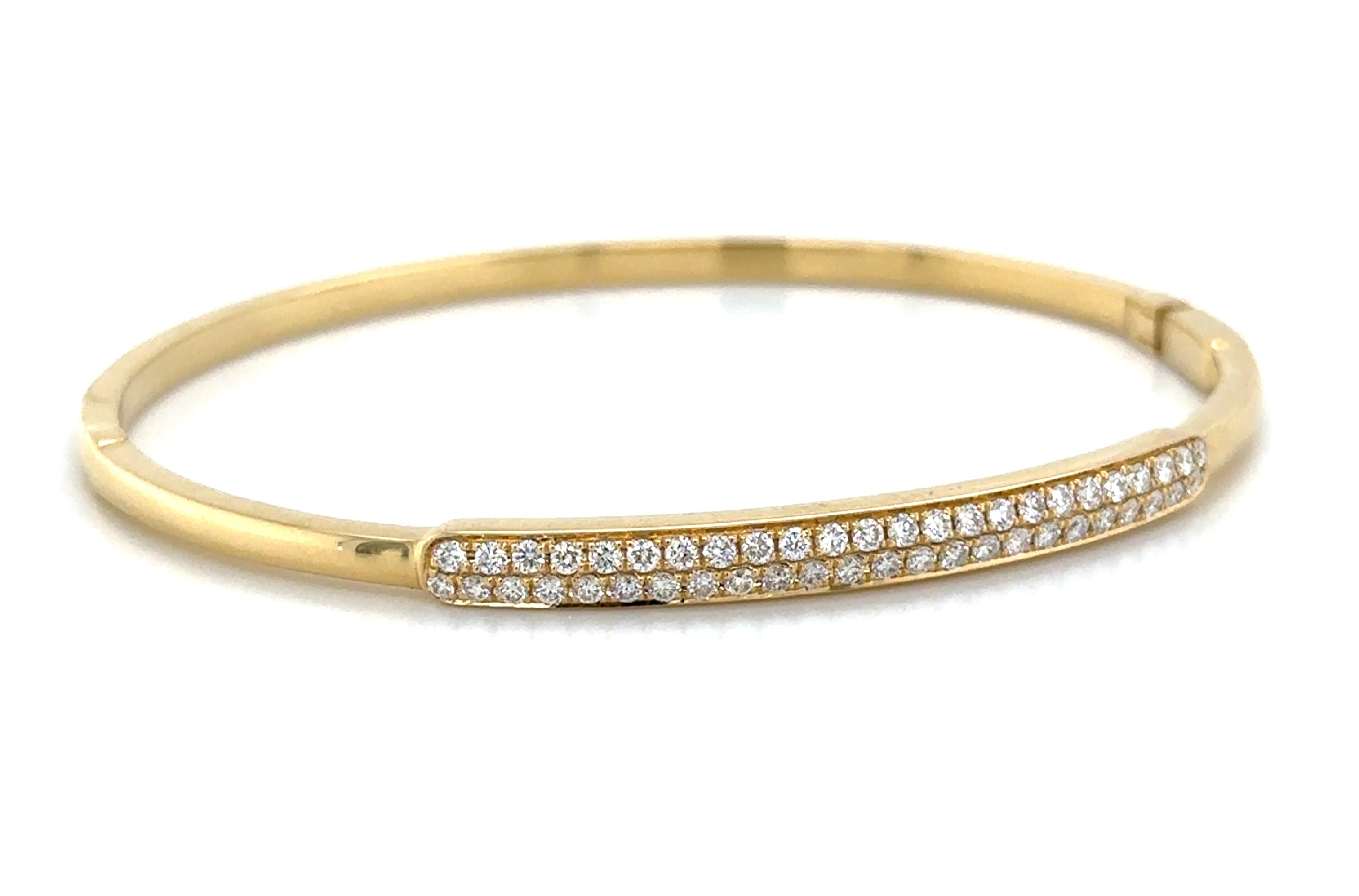 Indulge in luxury with our exquisite 0.70ct tw diamond pave set diamond bangle bracelet. Adorn your wrist with sparkling diamonds in a stunning pave setting. Elevate your style and feel like royalty with this elegant and timeless piece.