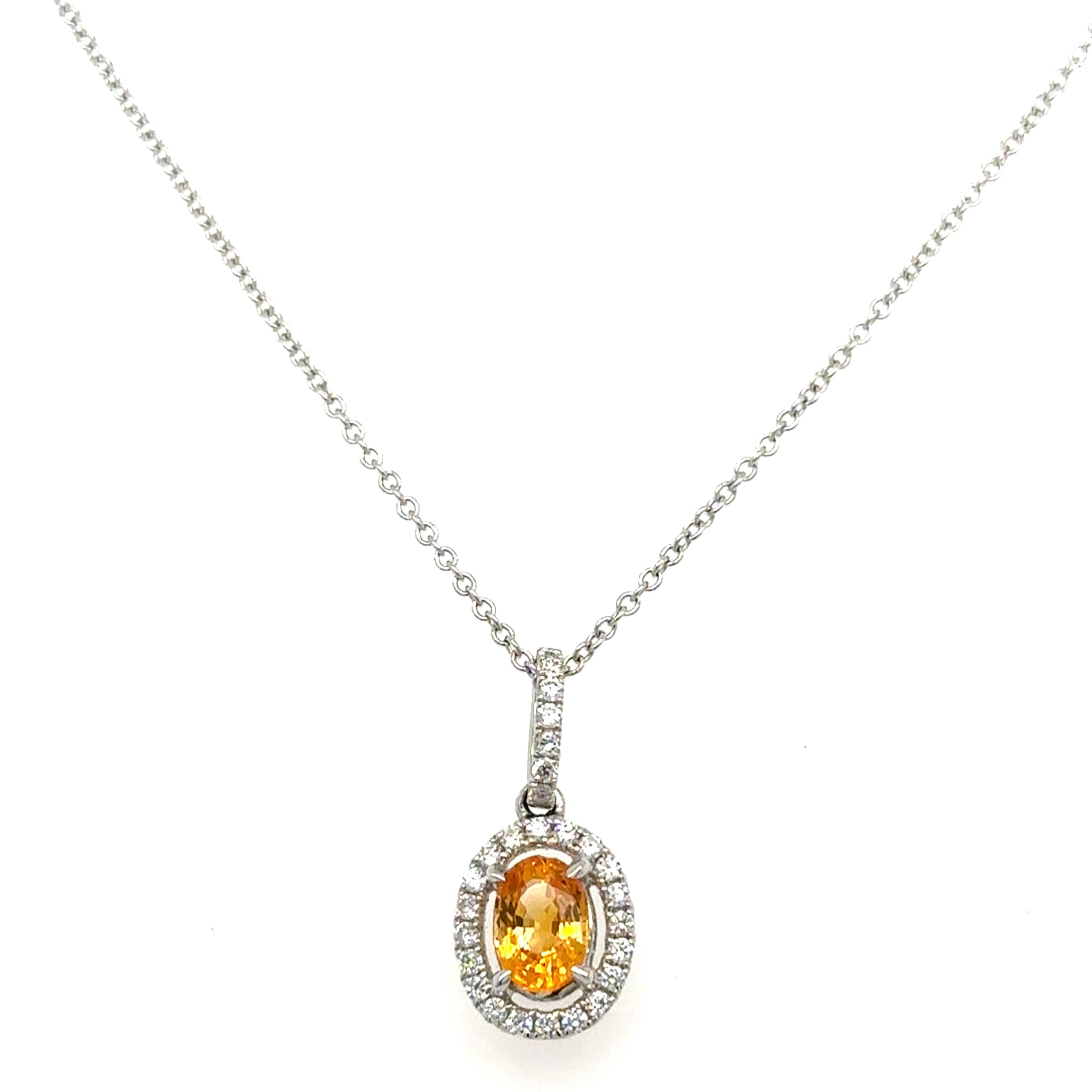 0.81ct tw Yellow Sapphire and Diamond Oval Shape Pendant Necklace