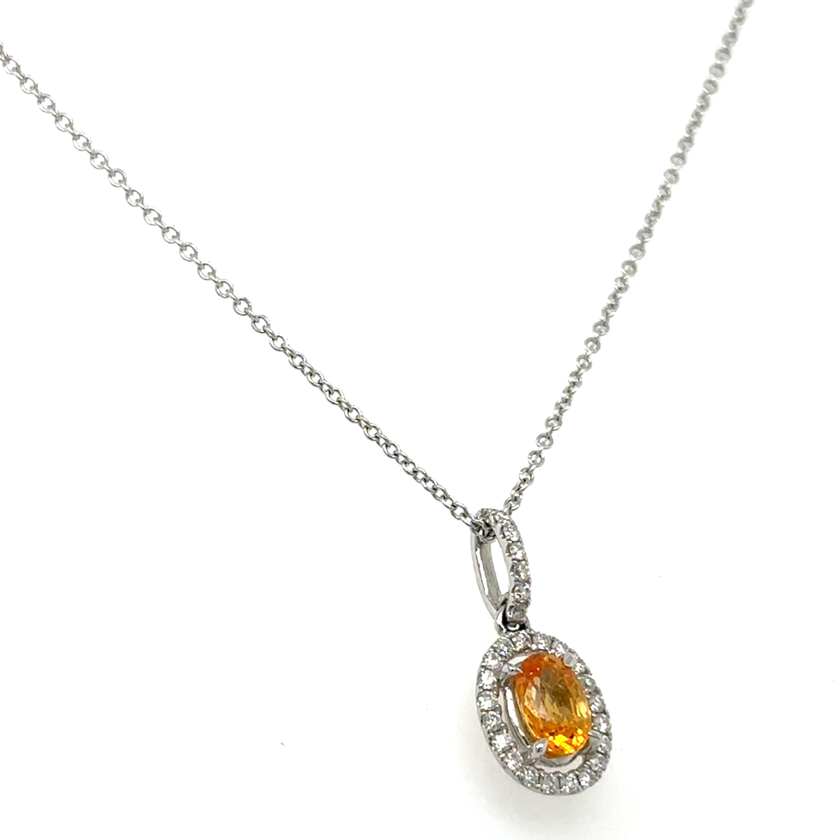 Experience the brilliance and beauty of this stunning 0.81ct tw yellow sapphire and diamond oval shape pendant necklace. Adorned with sparkling diamonds and a vibrant yellow sapphire, this pendant exudes elegance and sophistication.