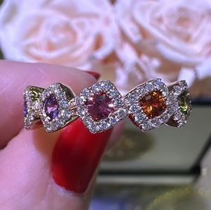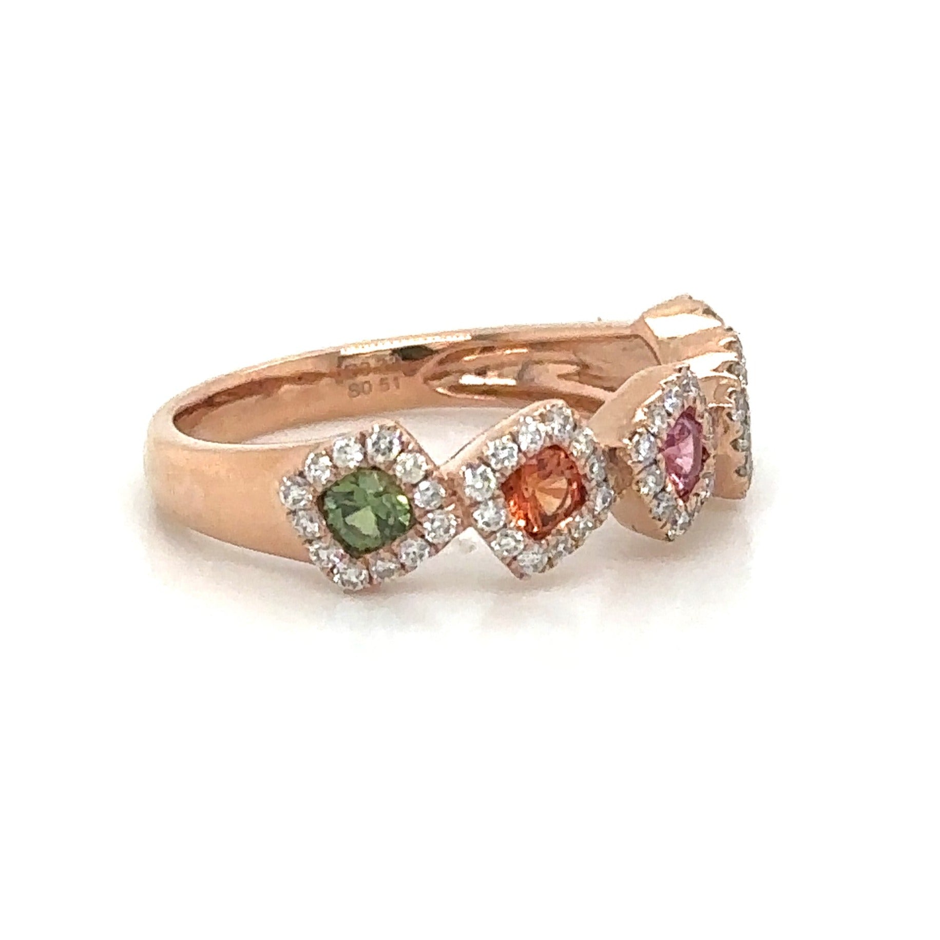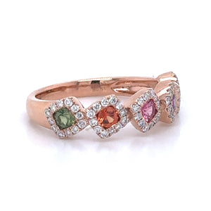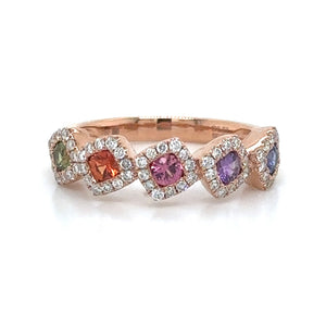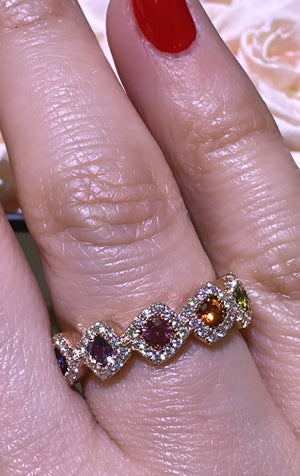 Experience the enchanting beauty of our 0.84ct tw diamond and rainbow sapphire ring. The glimmering diamonds and colorful sapphires create a stunning contrast that will catch the eye and add a touch of elegance to any outfit. Elevate your style with this exquisite piece of jewelry.