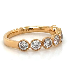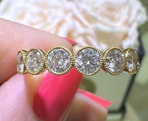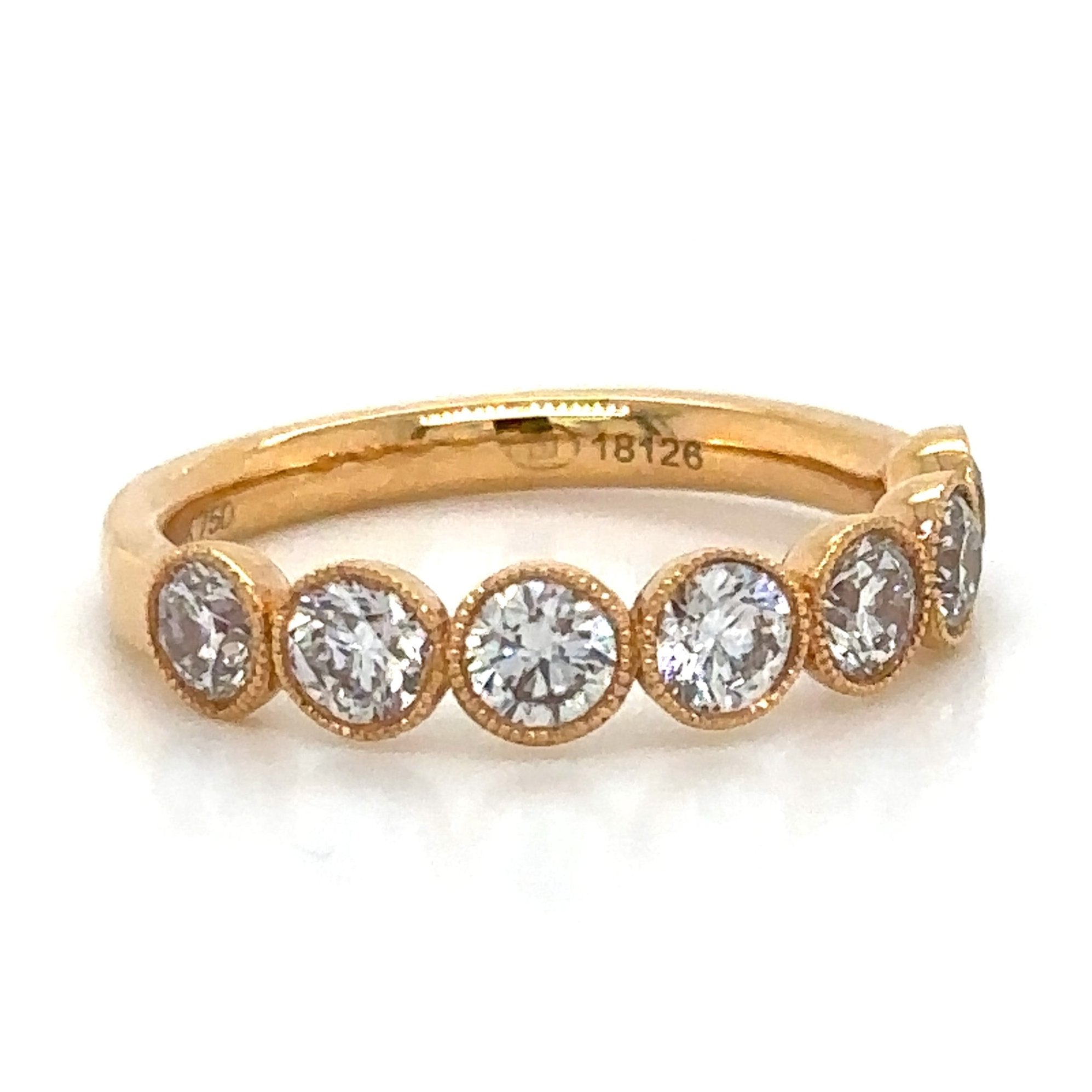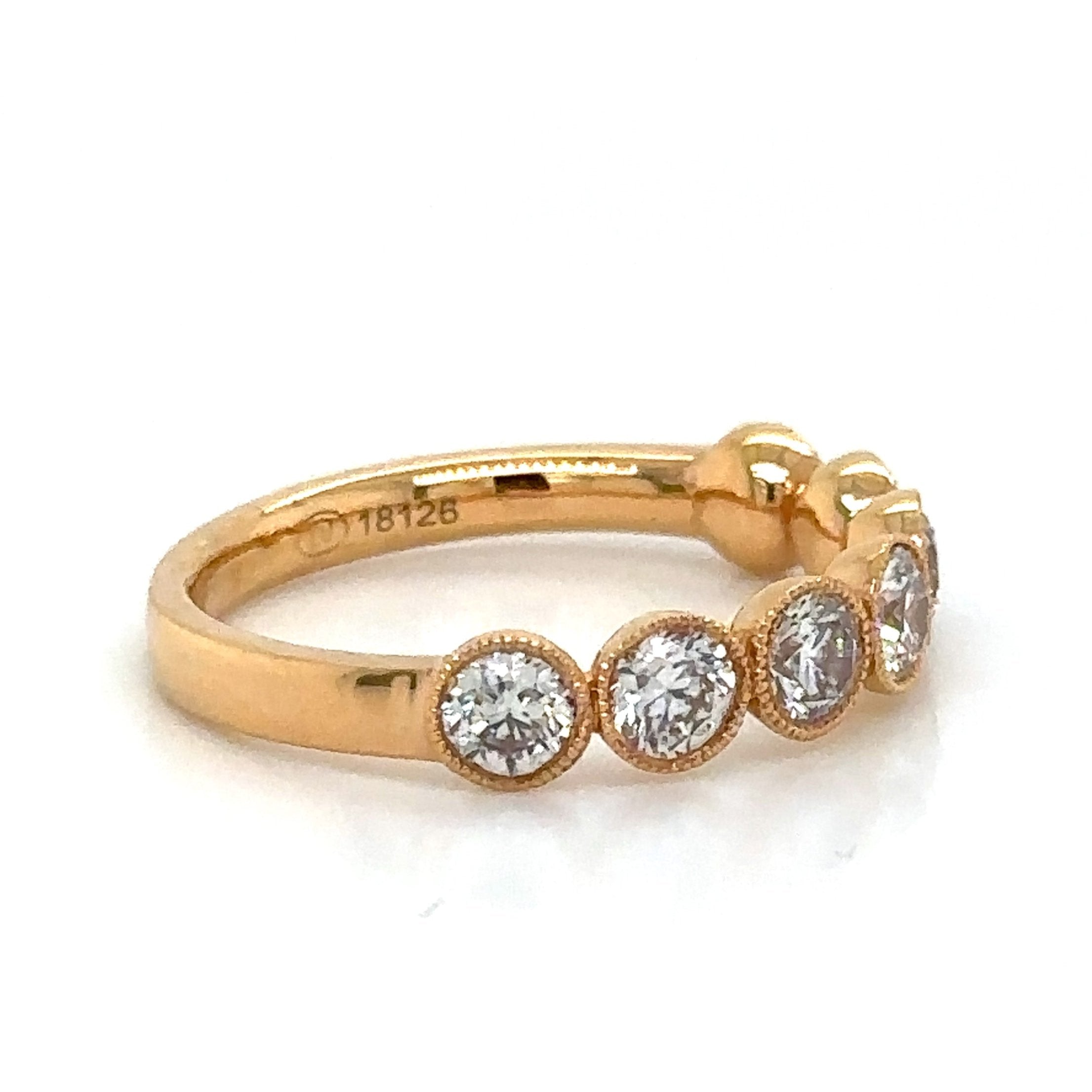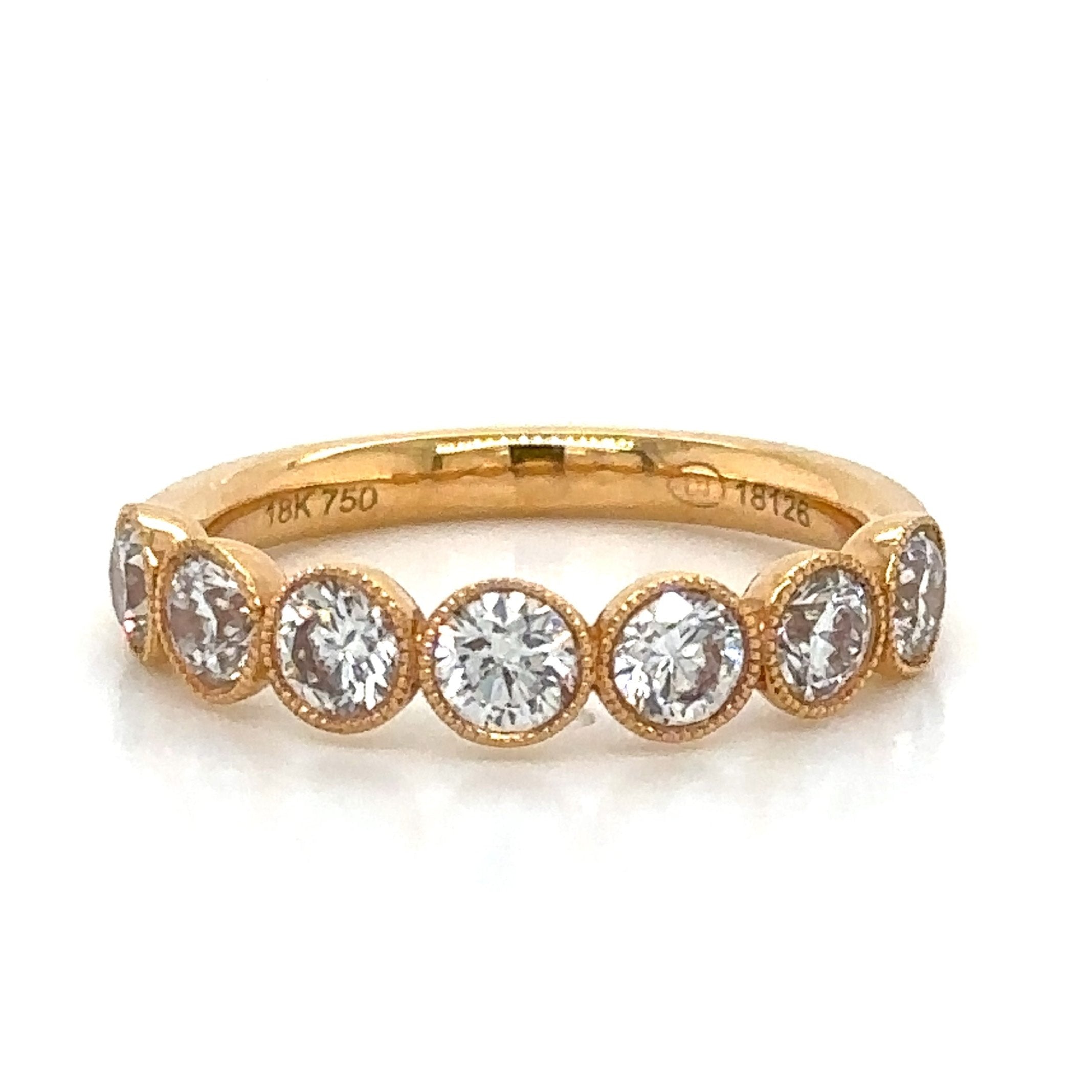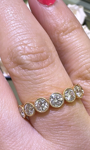 Add a touch of elegance to your look with our 1.29carat diamond bezel set with milgrain eternity band ring. The bezel setting provides extra security while the milgrain detailing adds a vintage charm. This ring is perfect for any occasion and will surely stand the test of time.