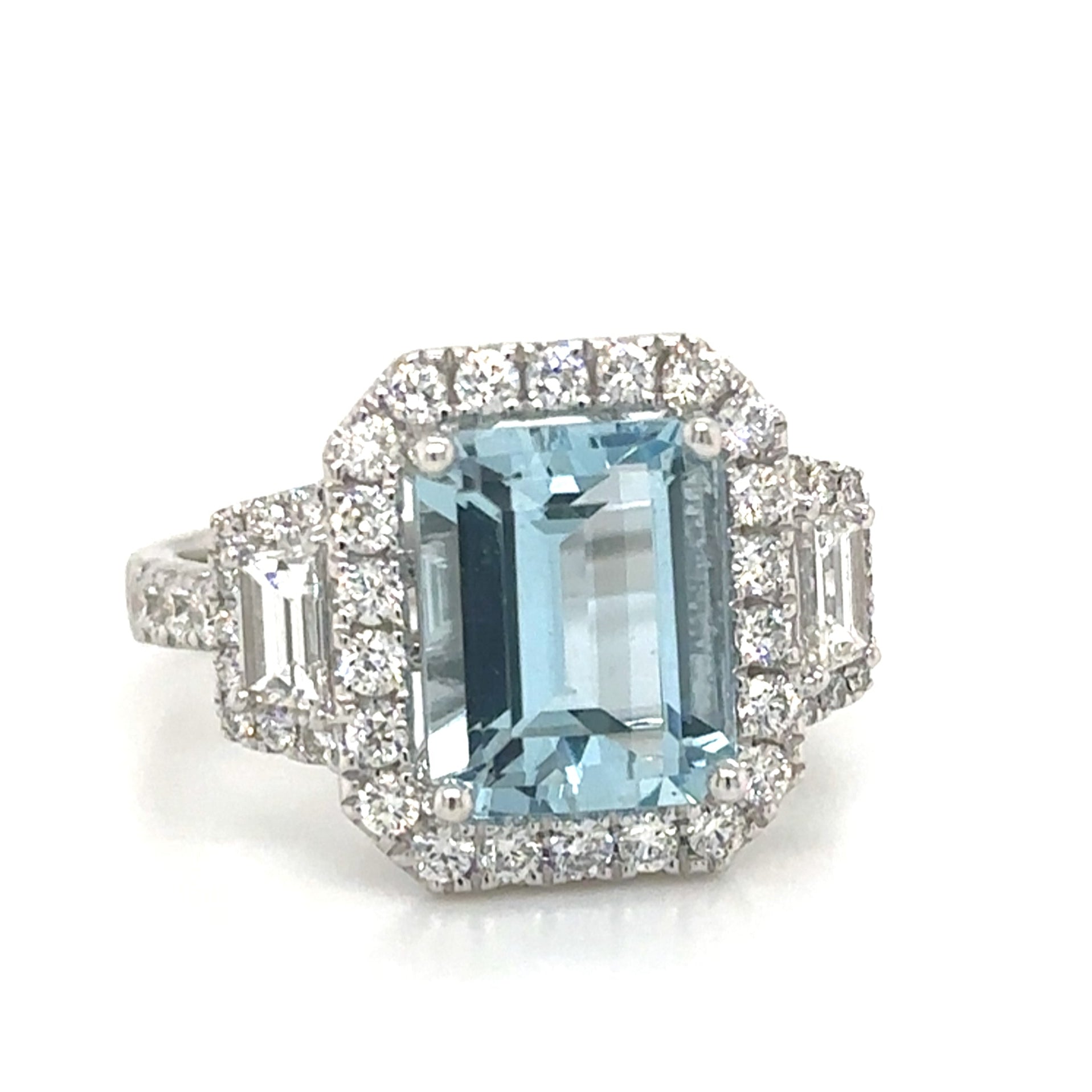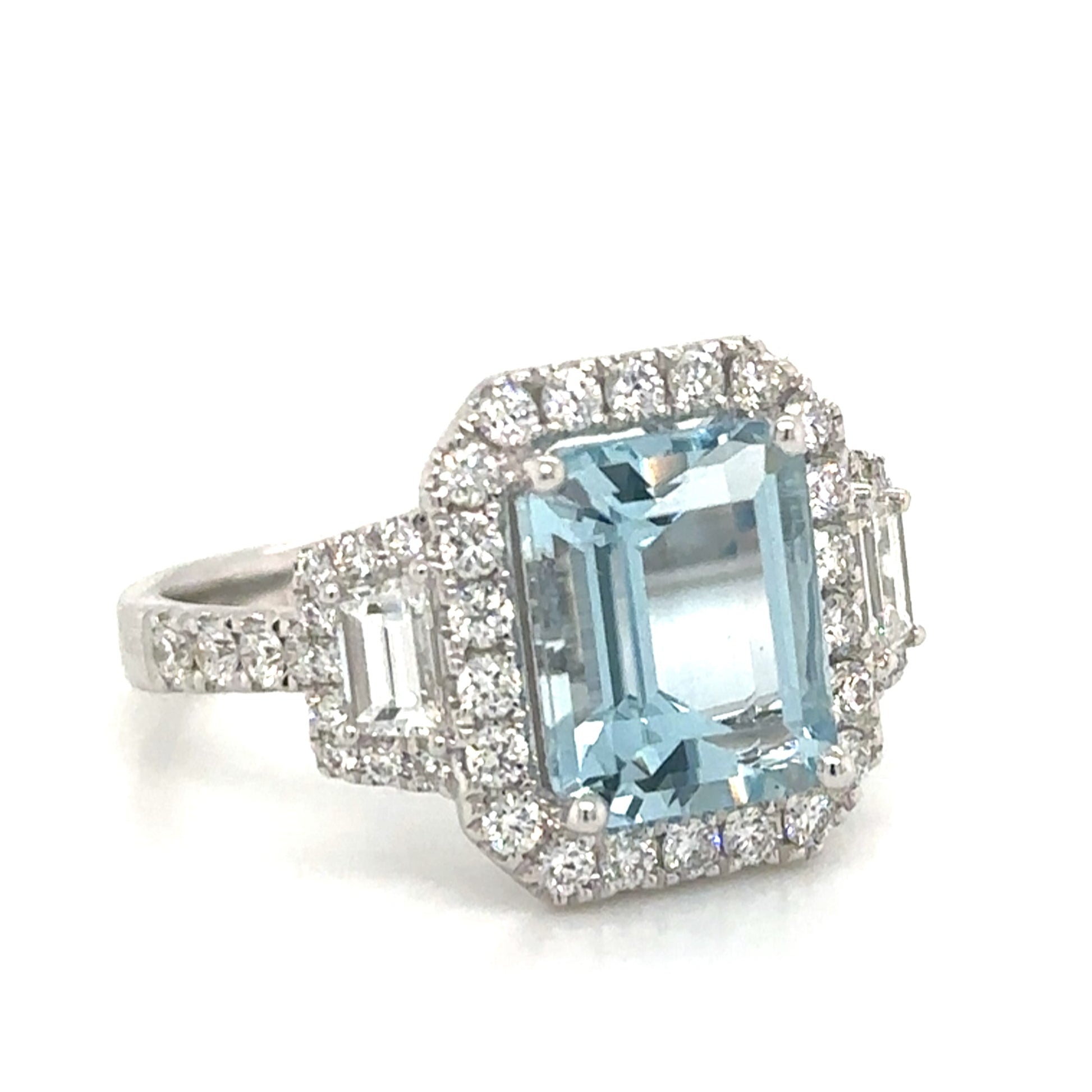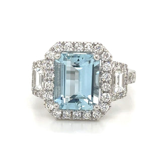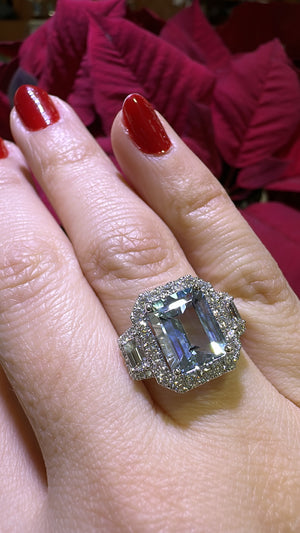 Experience the captivating beauty and elegance of our 4.44carat emerald-cut aquamarine & diamond cocktail ring. With a stunning emerald-cut aquamarine stone and sparkling diamond accents, this ring will elevate any outfit and make you feel like a true queen. Indulge in luxury and treat yourself to this exquisite piece.