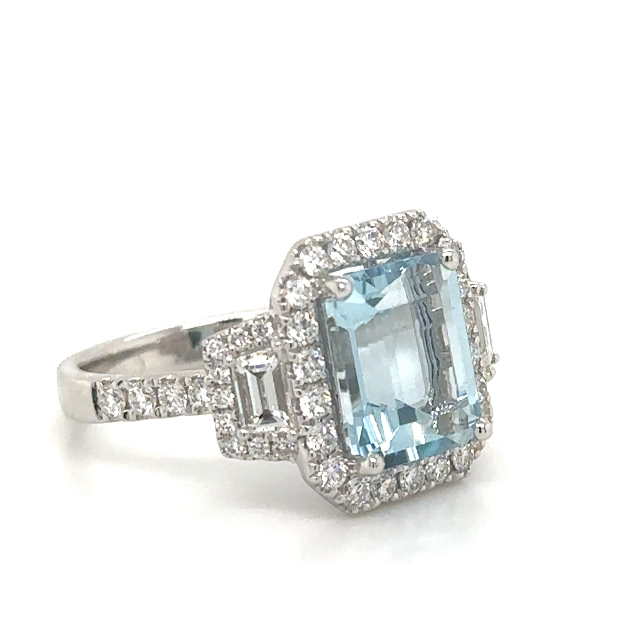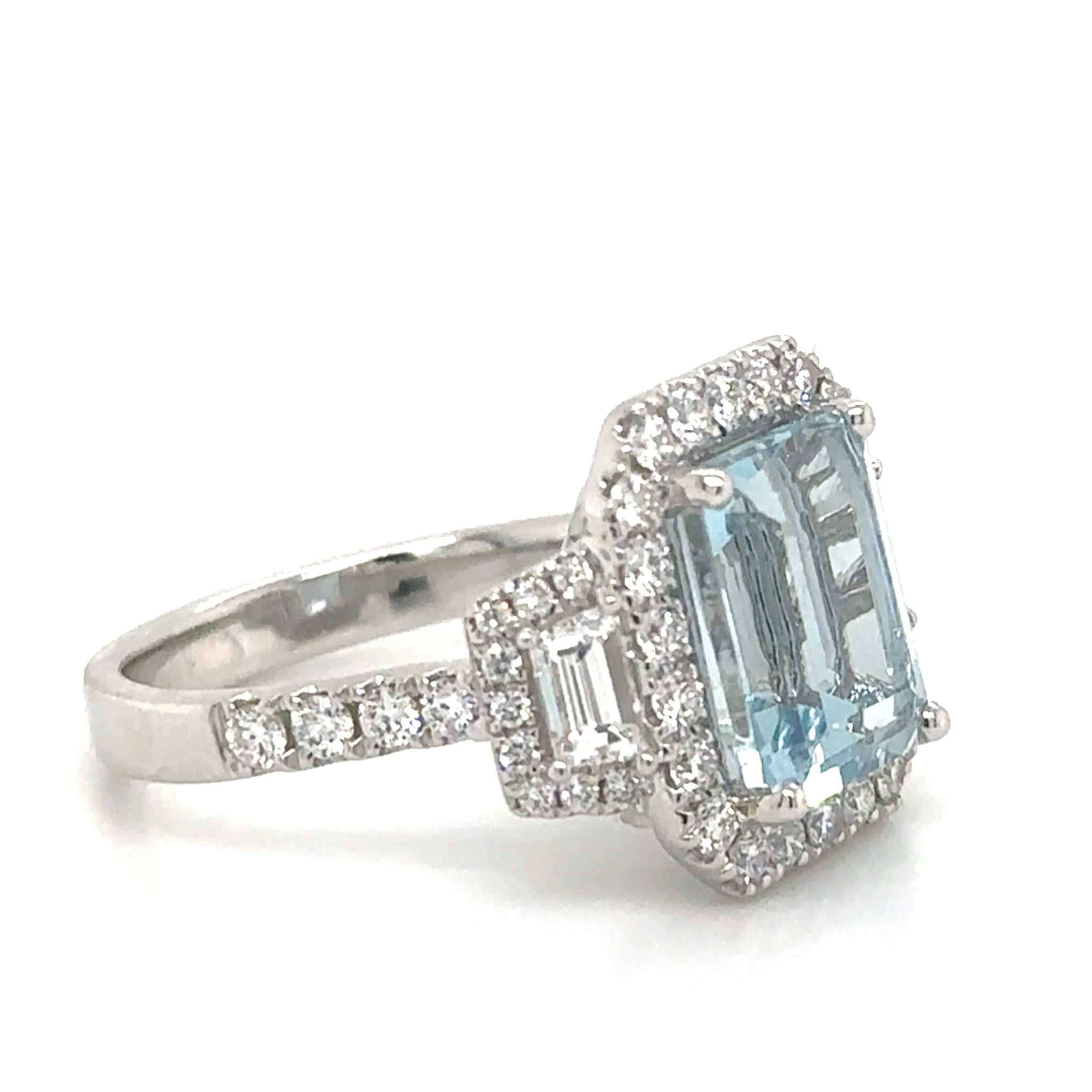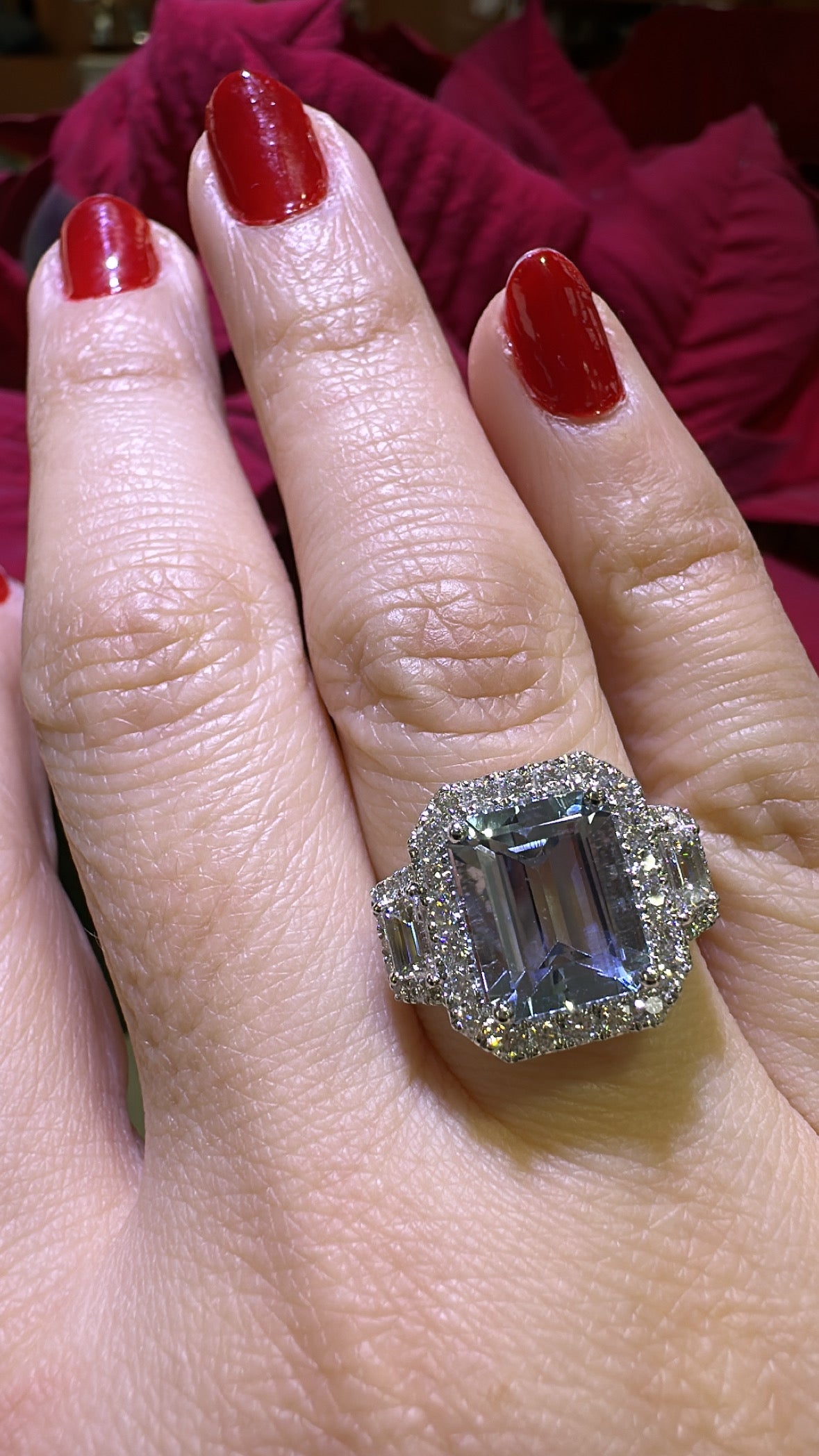 Experience the captivating beauty and elegance of our 4.44carat emerald-cut aquamarine & diamond cocktail ring. With a stunning emerald-cut aquamarine stone and sparkling diamond accents, this ring will elevate any outfit and make you feel like a true queen. Indulge in luxury and treat yourself to this exquisite piece.