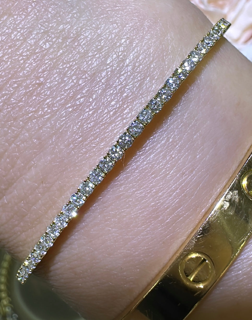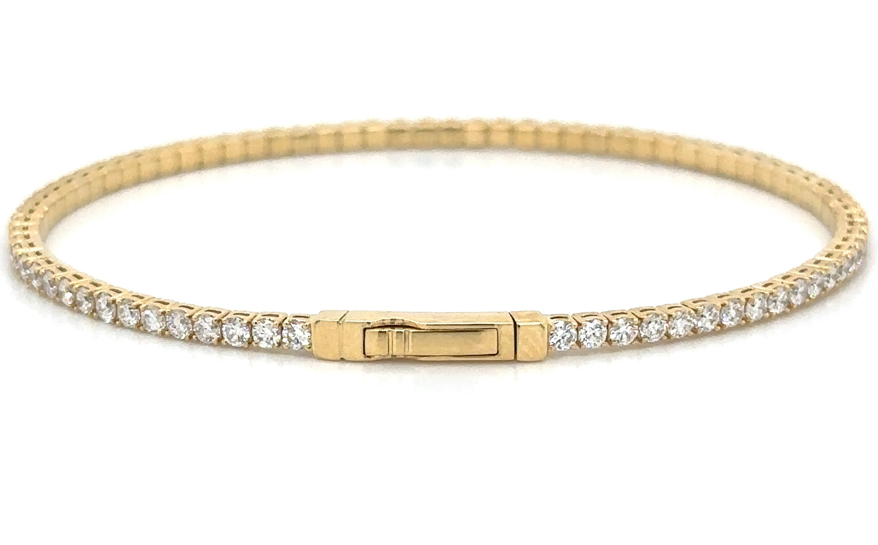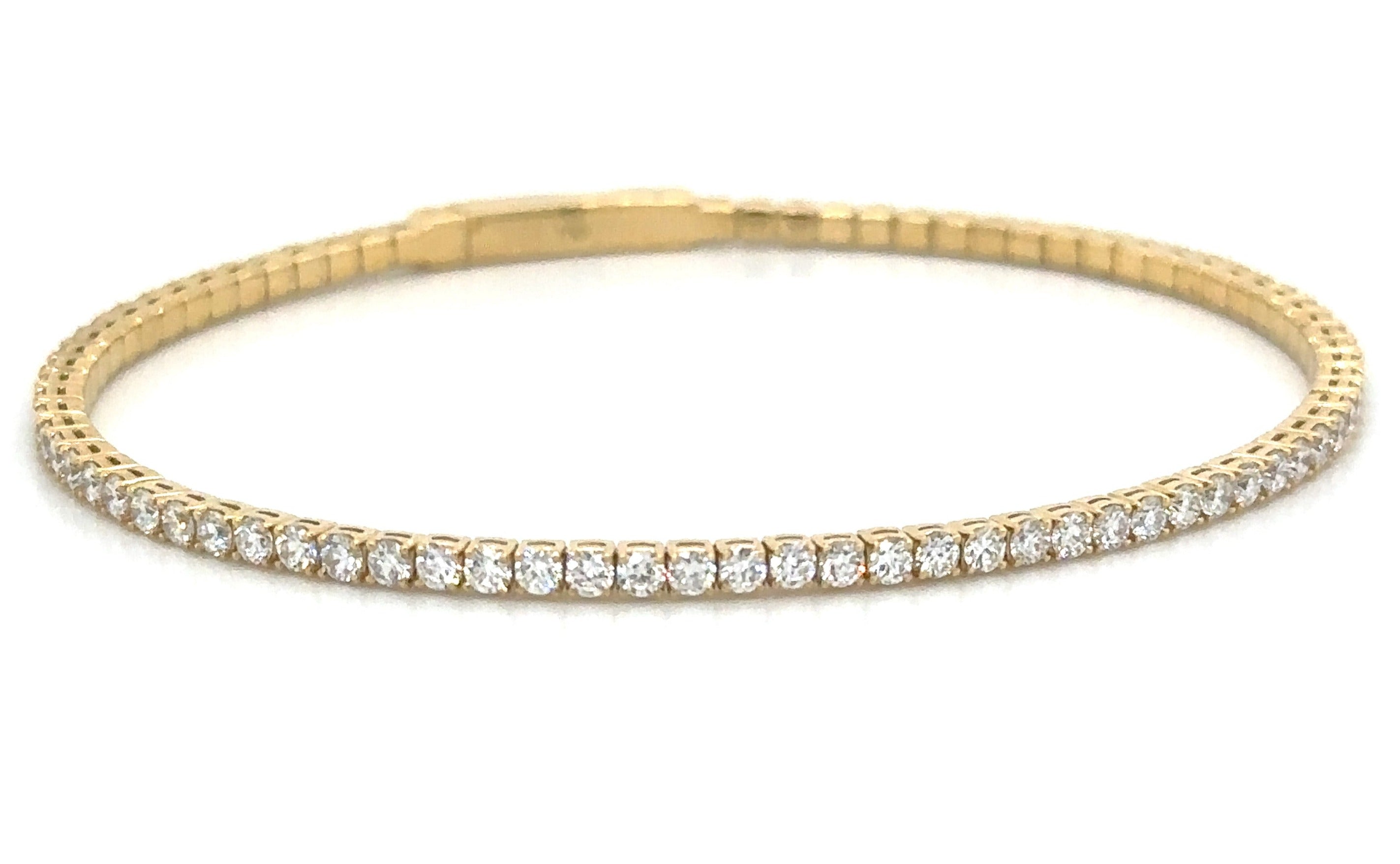 Elegantly crafted, this diamond semi flexible bangle bracelet boasts 2.00ct tw of sparkling diamonds. The perfect addition to any outfit, this bracelet exudes luxury and sophistication. Own a piece of timeless beauty and elevate your style with this stunning bracelet.