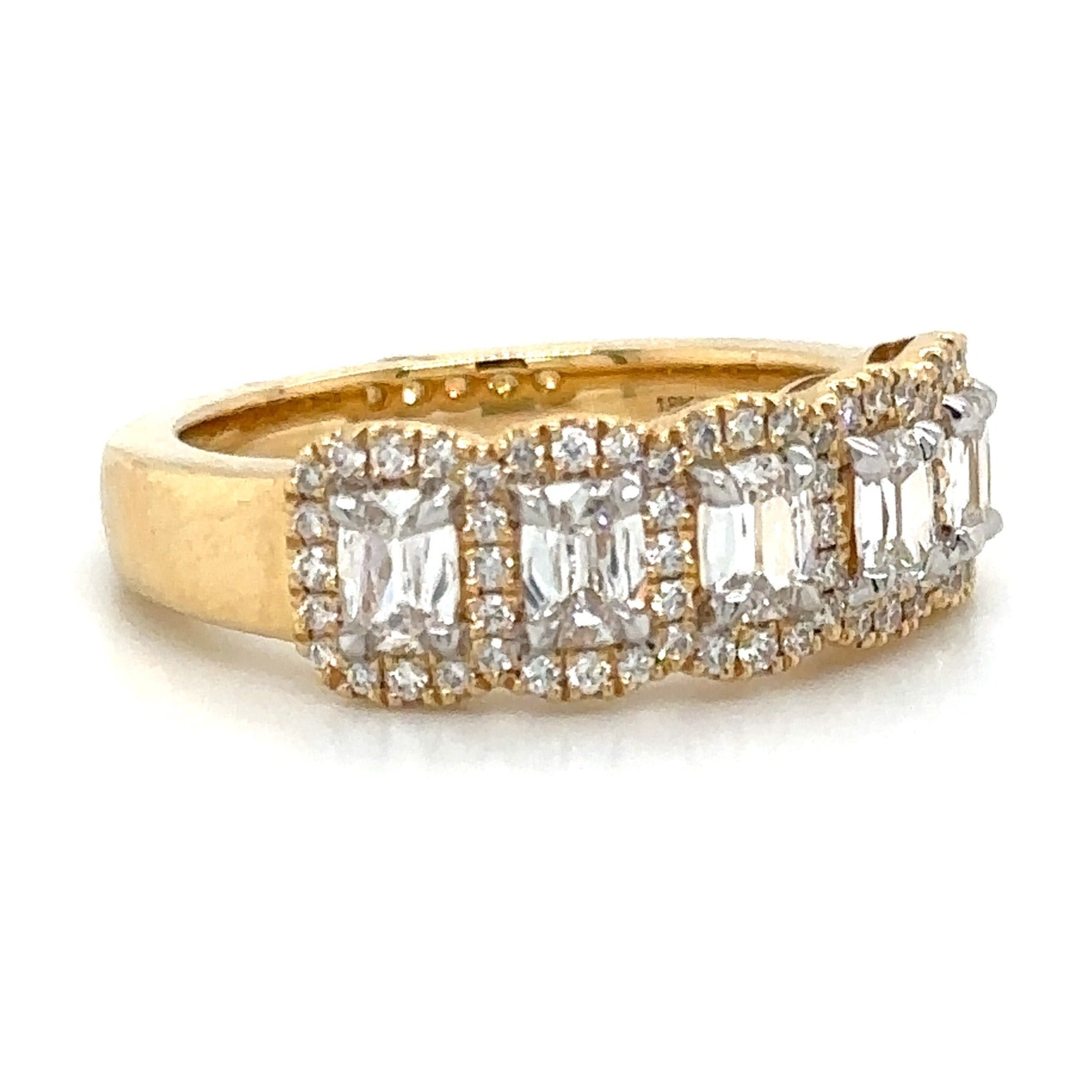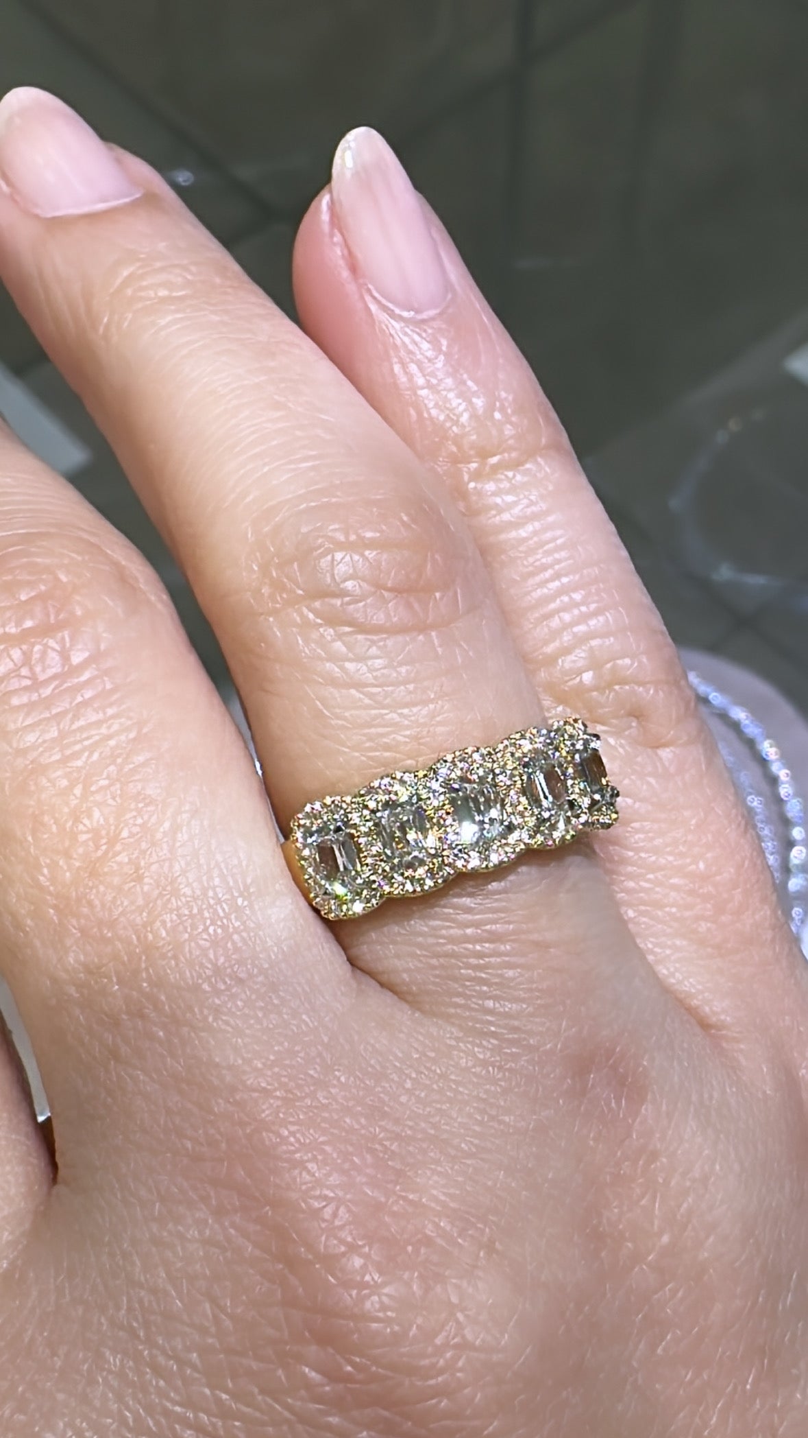 Channel your true radiance with the Henri Daussi designer cushion cut five stone diamond ring. Adorned with a stunning 1.00ct tw of dazzling diamonds, this ring creates a romantic and luxurious aura of sophisticated elegance. Make a statement of beauty and class with this gorgeous ring.