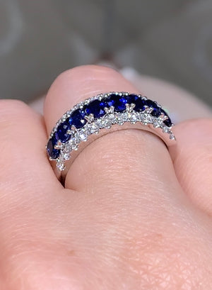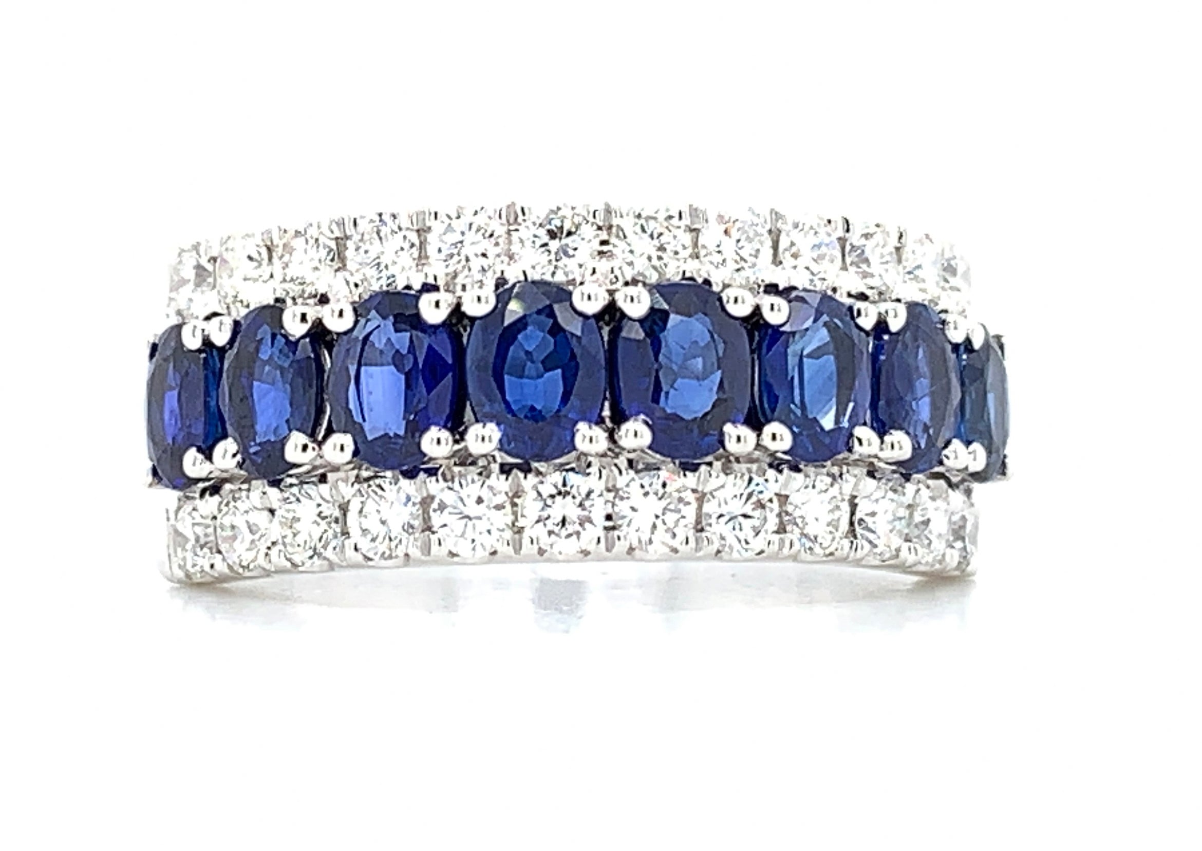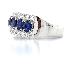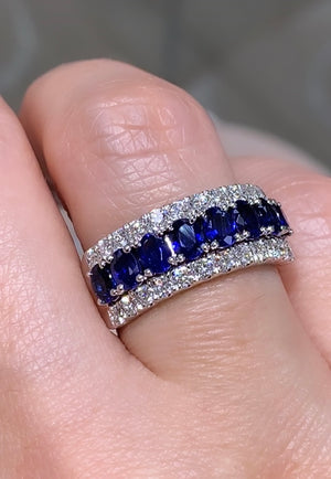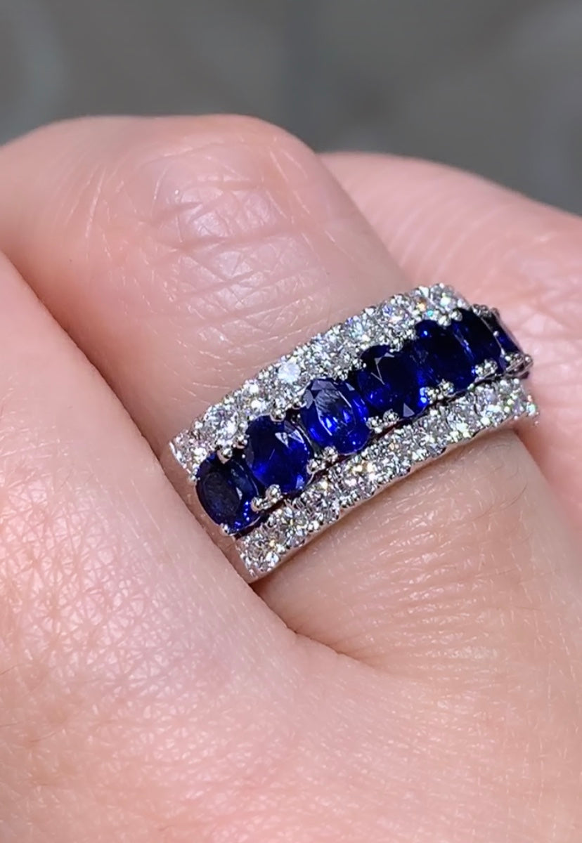 A dazzling, mystifying shade of blue sapphires with diamonds is in a class all by itself. This deep blue right-hand ring is as luxurious as it gets!