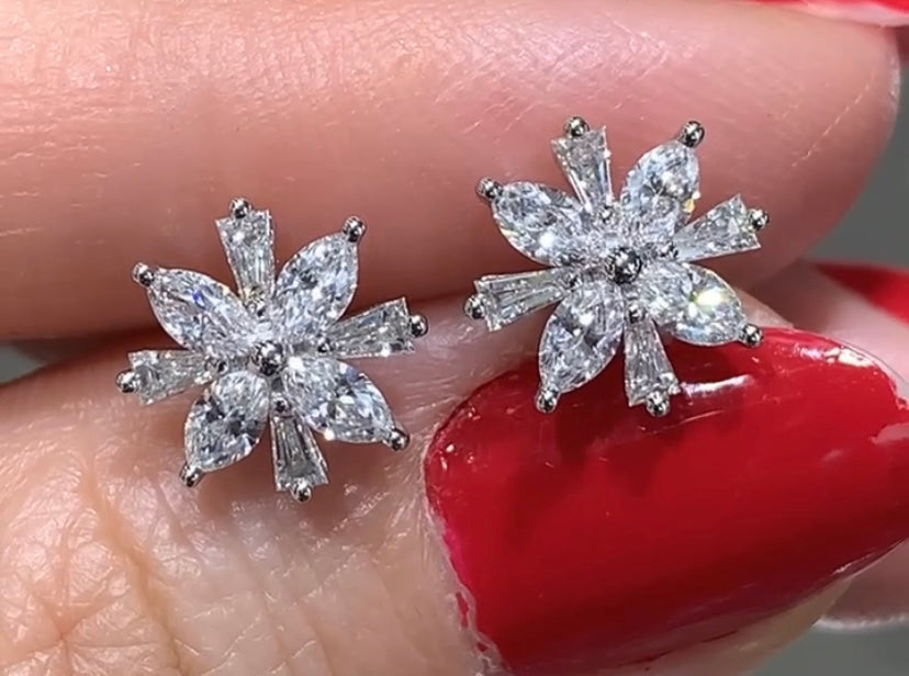 This design is so elegant and flirty she will never take these off her ears. It can become her favorite ones in the jewelry box. Solid marquise cut 1.03ctw of diamond flower motif that makes them so unique and beautiful.