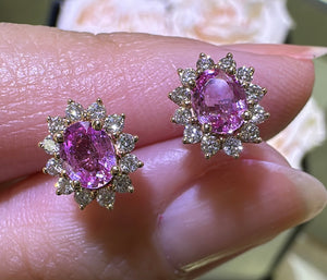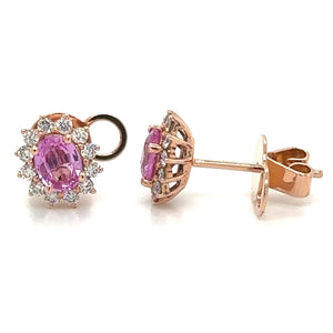 Sparkle and shine with our exquisite diamond halo and pink sapphire stud earrings. With 1.08carat of stunning diamonds and vibrant pink sapphires, these earrings will add a touch of elegance and glamour to any outfit. Perfect for special occasions or everyday wear, these earrings are a must-have for any jewelry collection.