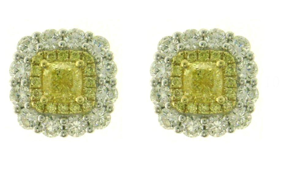 Fancy yellow diamond stud earrings prove the age-old saying "Diamonds are a girl's best friend". Totaling 1.87carats of delicious pleasure.