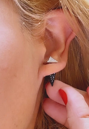 These dynamic diamond earrings are the perfect accent for any look! Featuring an eye-catching black and white pave spike design, these multiway wear option studs will make you sparkle for any occasion. Crafted from high-quality materials, these glamorous earrings will add a hint of luxury to your style. What will you wear them with?