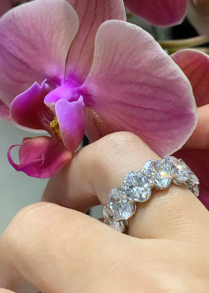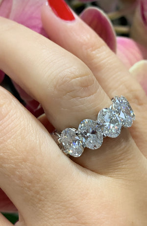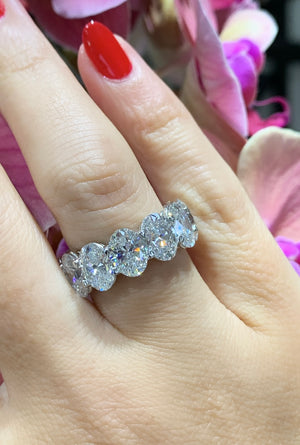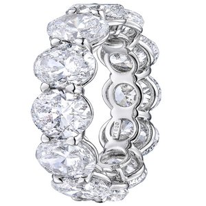 Oval cut diamond eternity band is absolutely amazingly crafted in luxurious Platinum and made with 12 oval cut diamonds of each GIA certified stone 12.14carats! True fit for a queen. Everyone will gasp with thrill when seeing it on her hand.