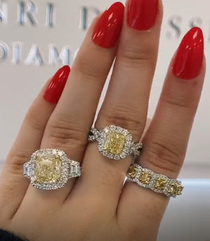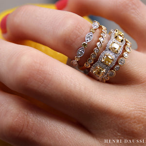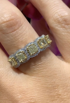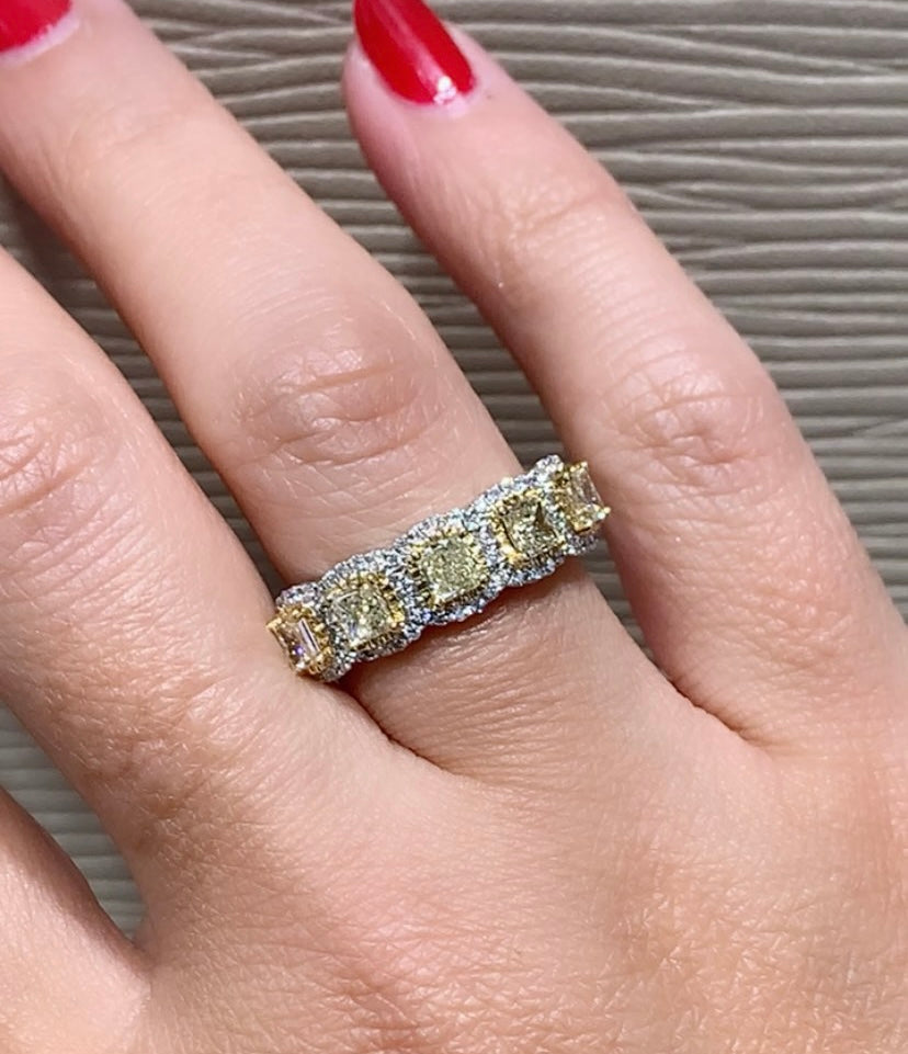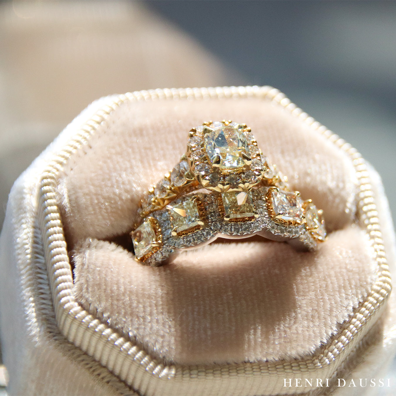 Unlock a luxurious look with the Henri Daussi canary fancy light yellow five stone 1.39ct tw diamond ring. Featuring five striking stones in a stylish design complemented by a beautiful canary yellow color, this stunning ring is sure to bring an elegant flair to any outfit. Make a statement and treat yourself today!