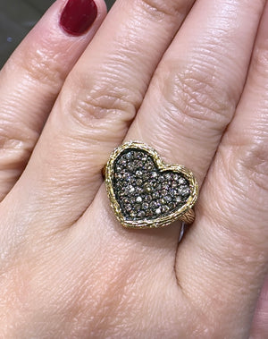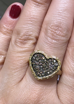 Champaign Pave Diamond Heart Right Hand Cocktail Ring