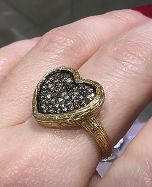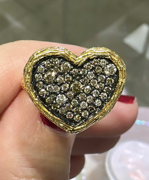 • This beautiful Champaign Pave Diamond Heart Right Hand Ring is the perfect way to declare your love. The sophisticated diamond pave detailing is crafted with quality and care, making it an elegant and enduring expression of your affection. Embrace the romance and make every moment special. What's not to love?