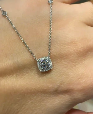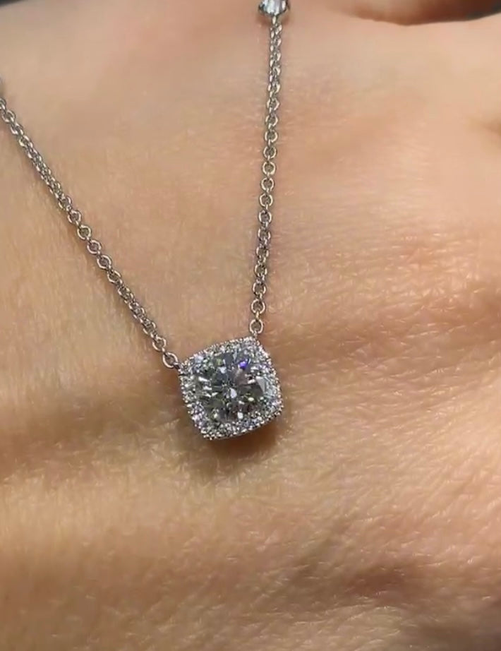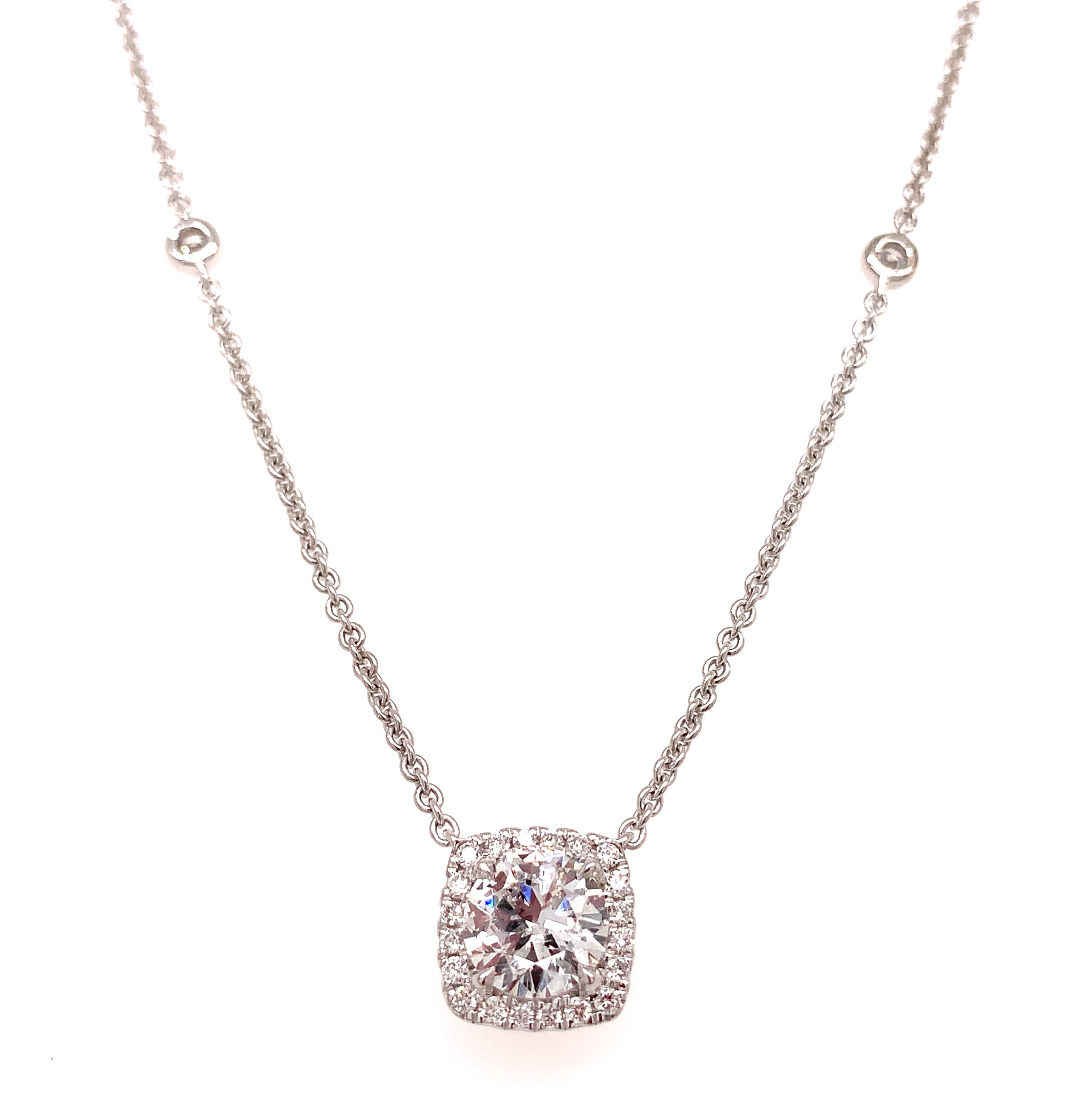 0.81CT T.W. Diamond Round Brilliant Cut Halo Solitaire Necklace