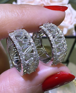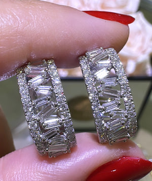 Diamond 1.28carat Baguette and Round Hoop Huggie Earrings
