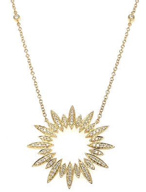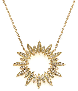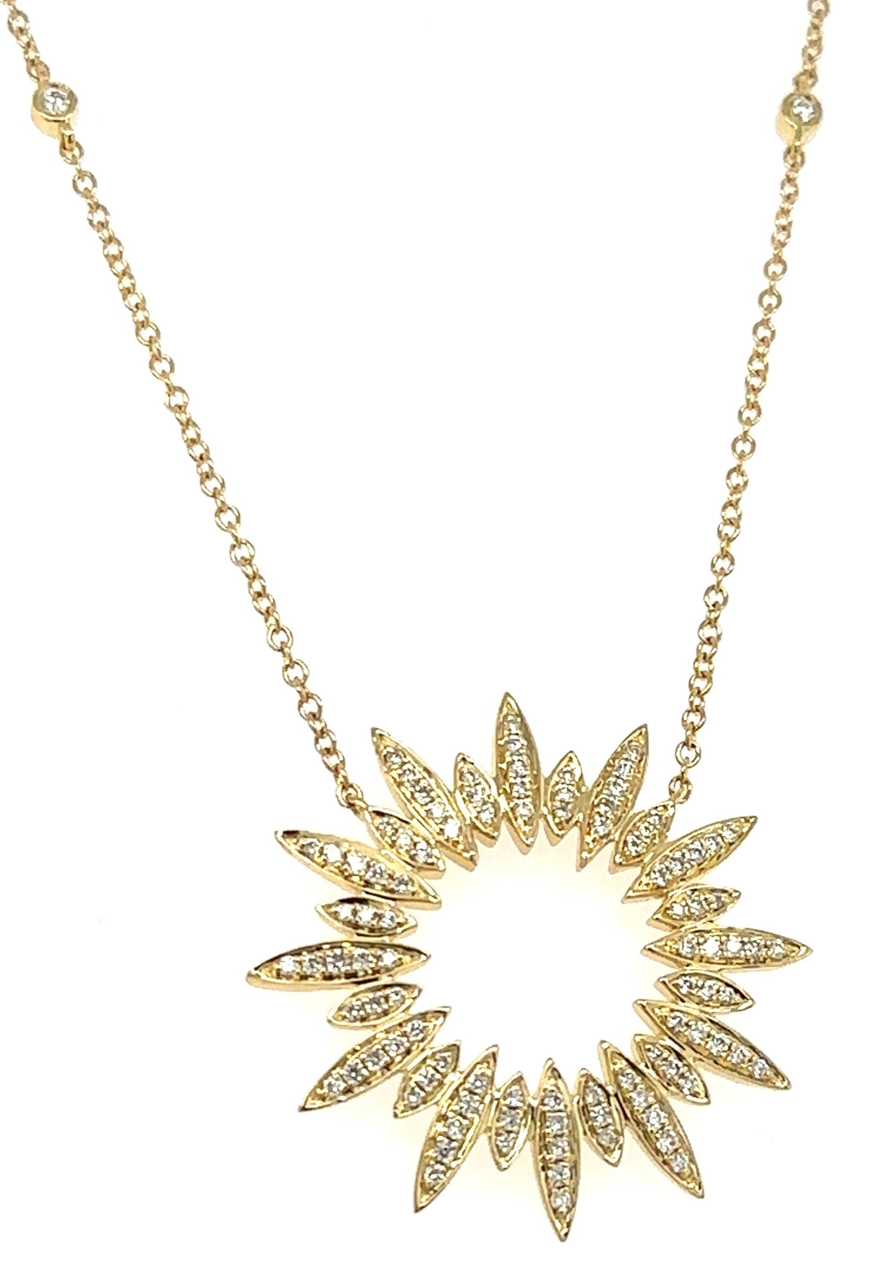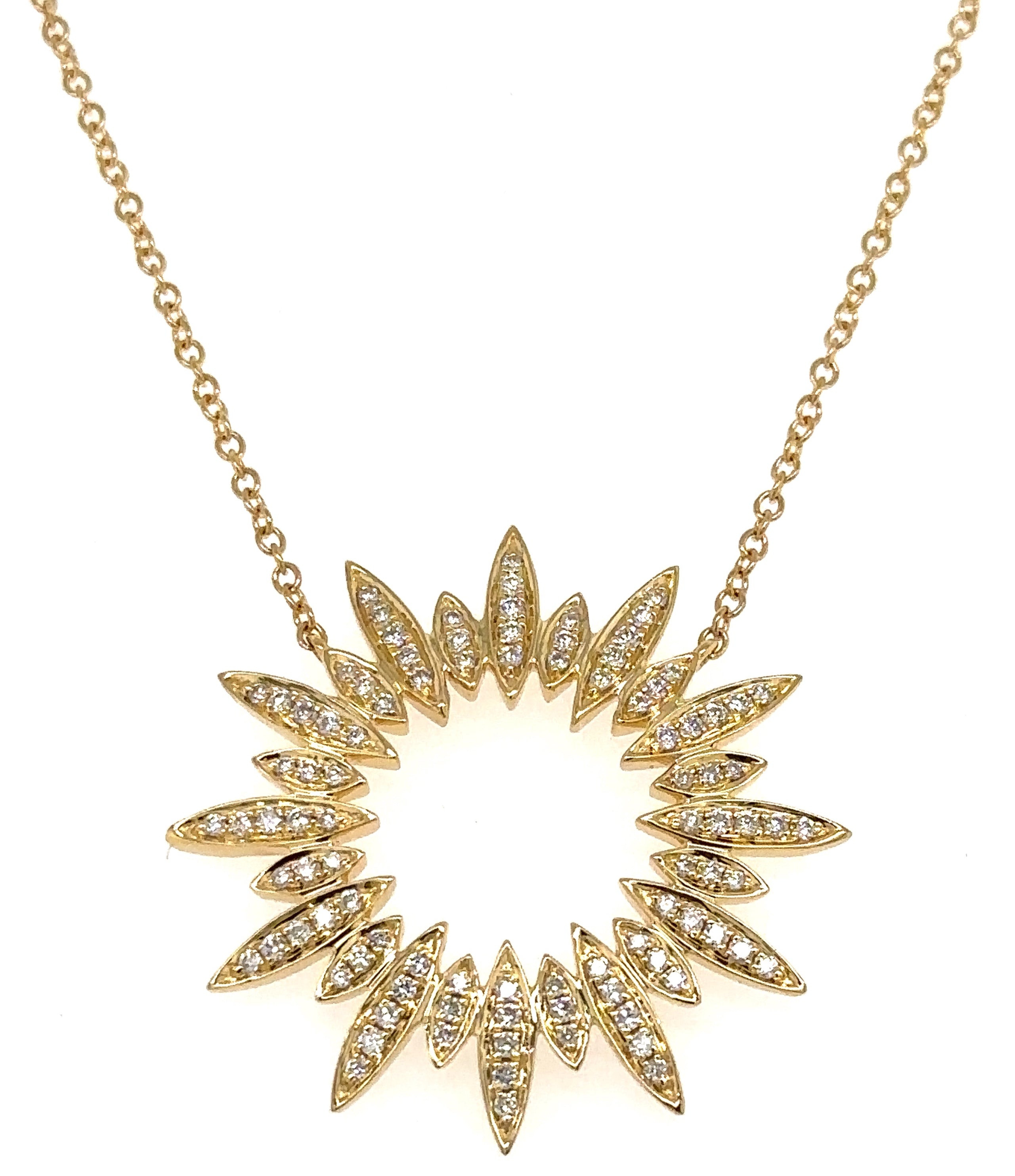 Diamond pave circle will go perfect with every outfit of hers. Made in rich yellow gold and is set with 98 full cut round brilliant cut diamonds totaling 0.43ct in total weight.