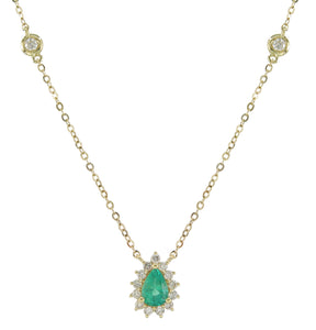 This Emerald and diamond pear shape pendant will be a great gift for your loved one. 15 diamonds and 1 pear shape emerald form a beautiful piece of jewelry.