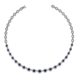 Add a majestic touch to your ensemble with this stunning 10.14carat royal blue sapphire diamond statement necklace! This eye-catching necklace will turn heads with its dazzling popping color and exquisite craftsmanship that will make any outfit stand out. Feel like royalty with its regal-inspired design so you can sparkle like never before.
