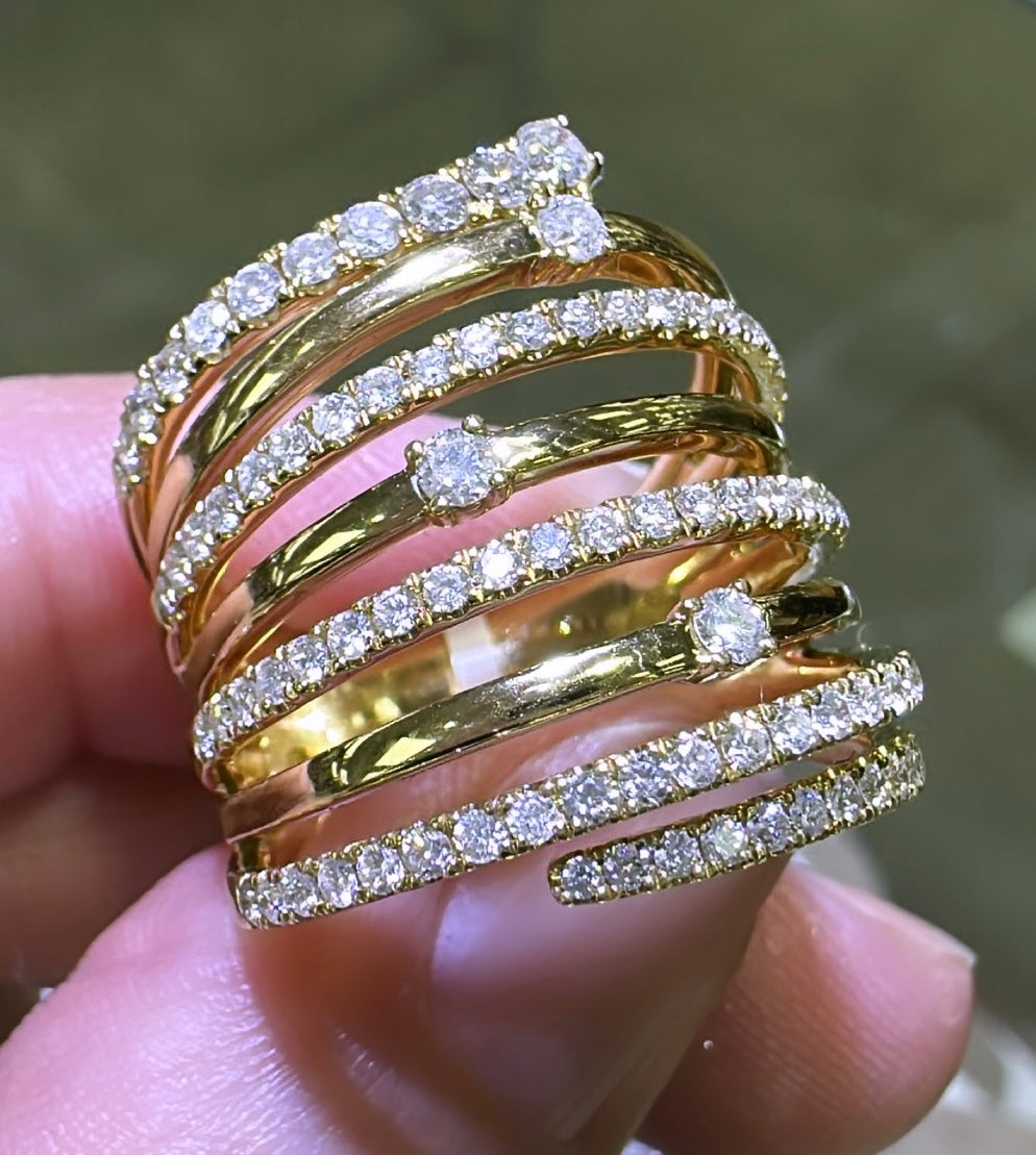 This divine diamond ring is the perfect accessory for any occasion. With eight rows of sparkling diamonds, it's sure to make you feel your most confident and beautiful. The dazzling design and craftsmanship add an undeniable sophistication and elegant touch to any look. Put it on and let your inner glamour shine.