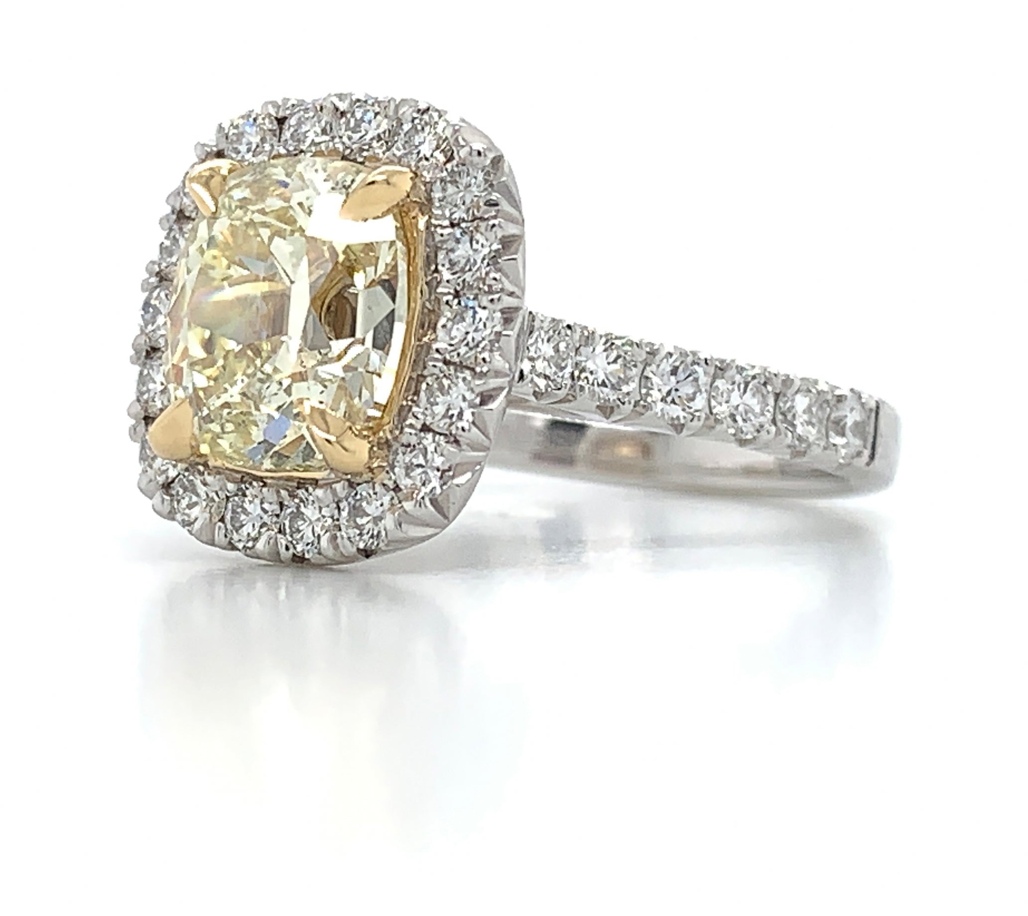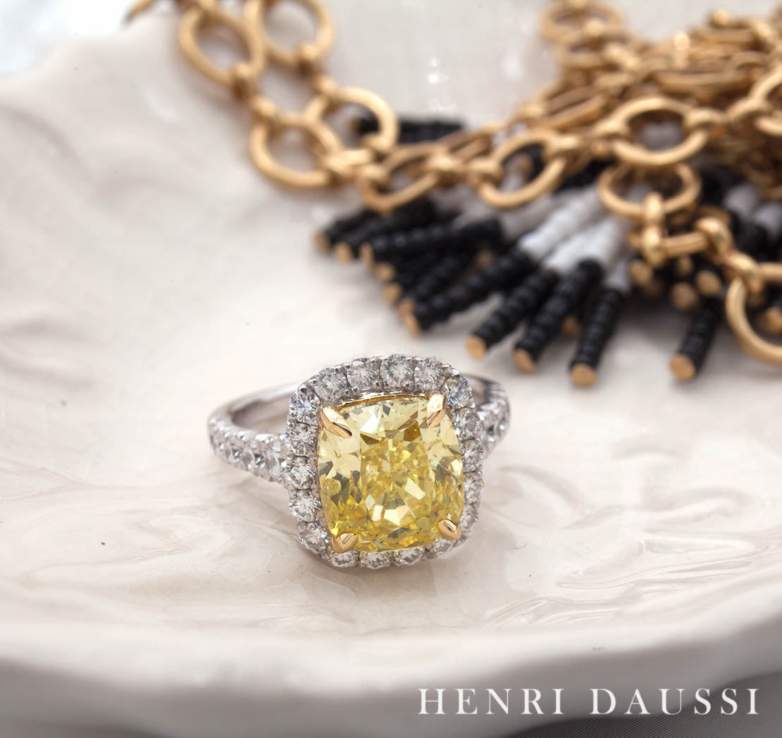 Fall in love with this extraordinary Henri Daussi Canary Fancy Yellow Cushion GIA Certified 2.85ct t.w. Engagement Ring that dazzles with a vibrant center stone and breathtaking diamond accents. Make a sparkling statement and capture the beauty of a lifetime with this stunning piece of jewelry.