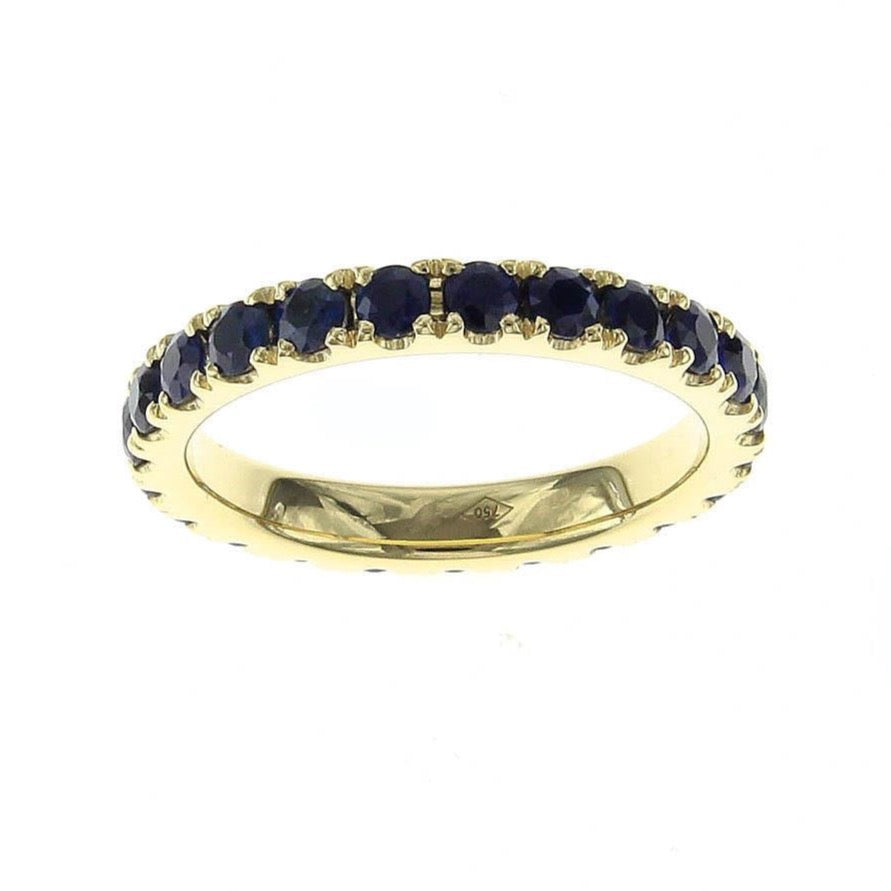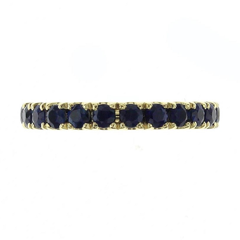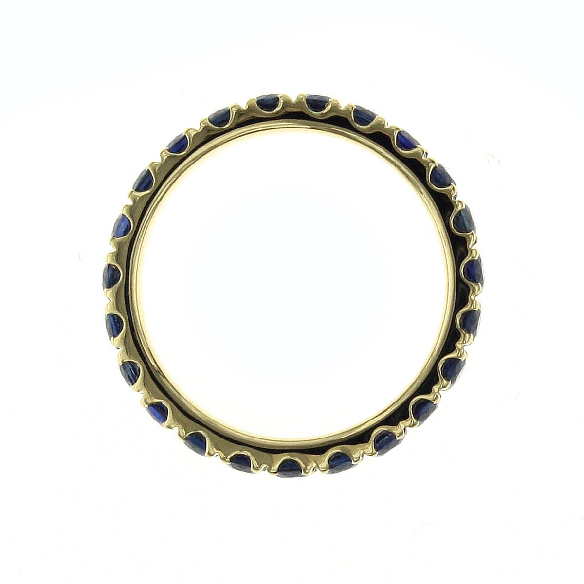 When it comes to stackable rings there can never be enough of them. This blue sapphire eternity band is crafted in 18K gold. It's so chic and elegant. Wear it next to a diamond band or solo.