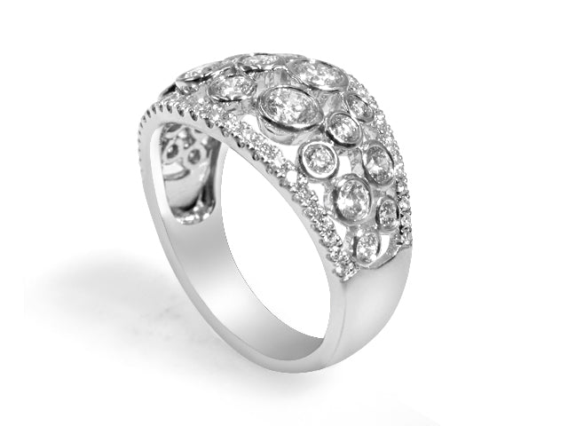 Elevate your style with our stunning bezel set diamond fancy ring. This beautifully crafted ring features a bezel setting to securely hold multiple diamonds totaling 1.27 carats. With its sleek design and dazzling diamonds, this ring is sure to catch everyone's attention and make a statement. Add a touch of luxury to your wardrobe with this must-have accessory.