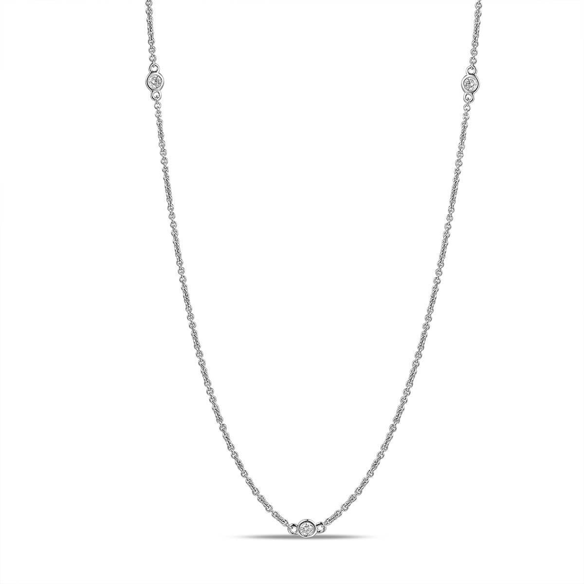 Sparkle and shine with our 0.41ct t.w. diamond bezel set diamond by the yard necklace. Each diamond is bezel set for a secure and elegant look. Perfect for adding a touch of glamour to any outfit. Treat yourself or someone special to this dazzling accessory.