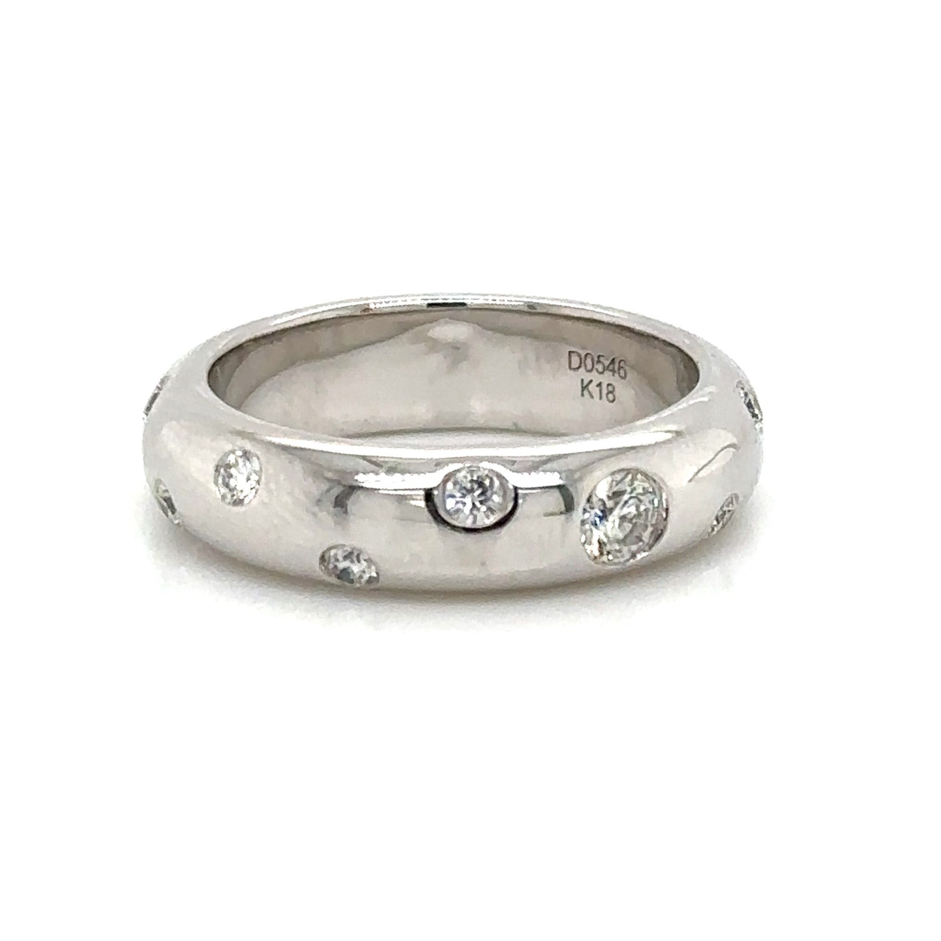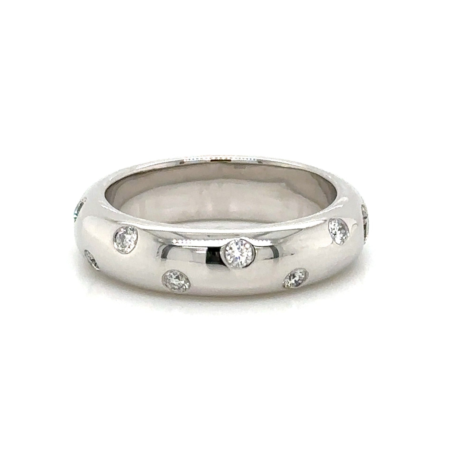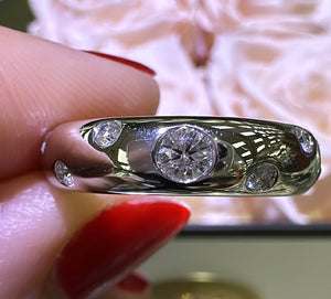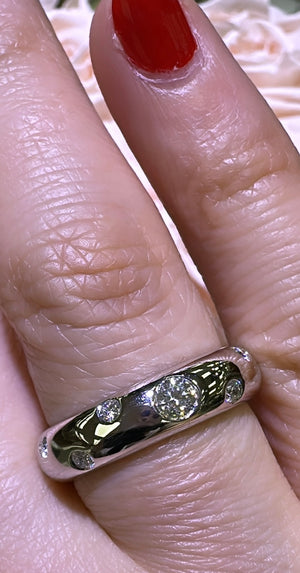 Add sparkle and elegance to your look with our 0.54carat Burnish Set Diamond Station Ring. Featuring a dazzling array of diamonds, this ring is expertly crafted to add a touch of luxury to any outfit. Make a statement with this beautiful and timeless piece.