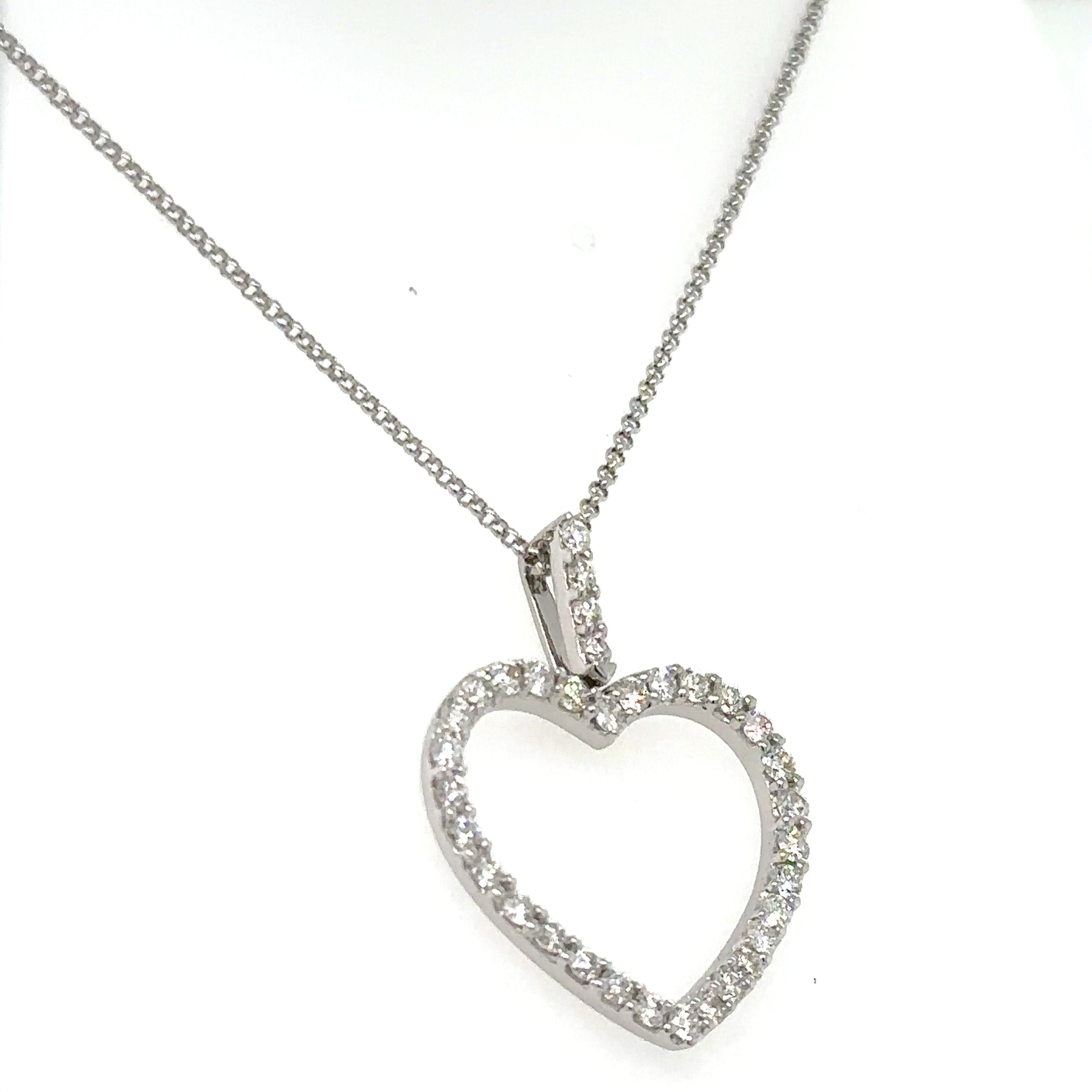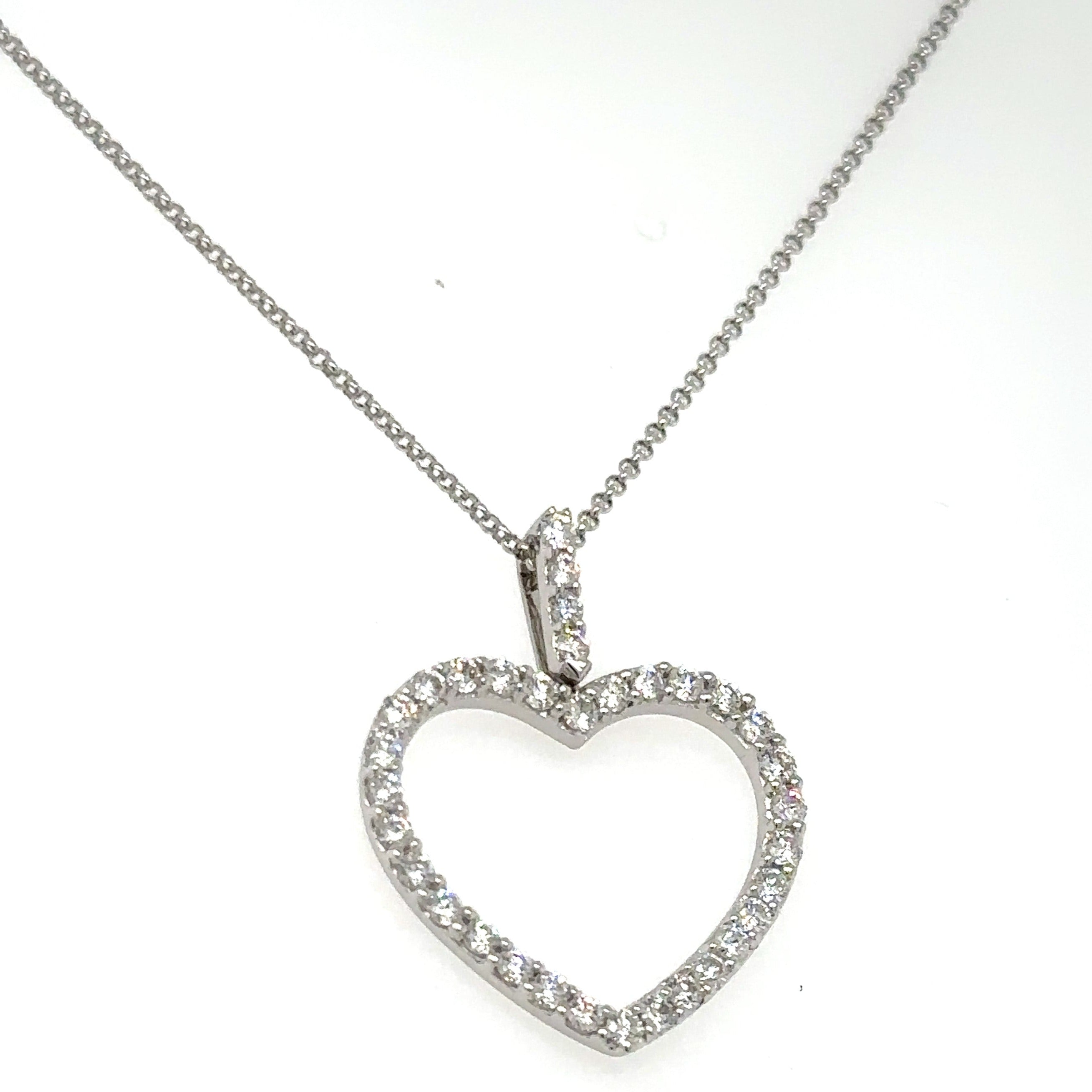 Unleash your inner romantic with our 0.81carat diamond open heart shape pendant with chain. Dazzle with the perfect pairing of elegance and beauty. Show your love and affection with every sparkle!