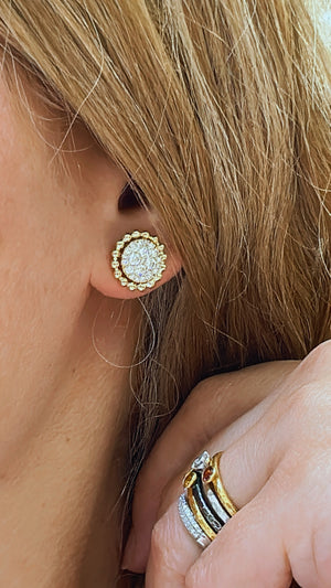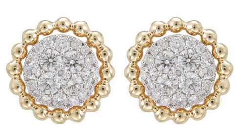 Feel the sparkle of 0.91ct tw diamond cluster invisible-set with beaded gold halo stud earrings! Elegance and luxury come together in this eye-catching beaded halo stud earring design, making them perfect for any special occasion. Add a unique touch to your style today!