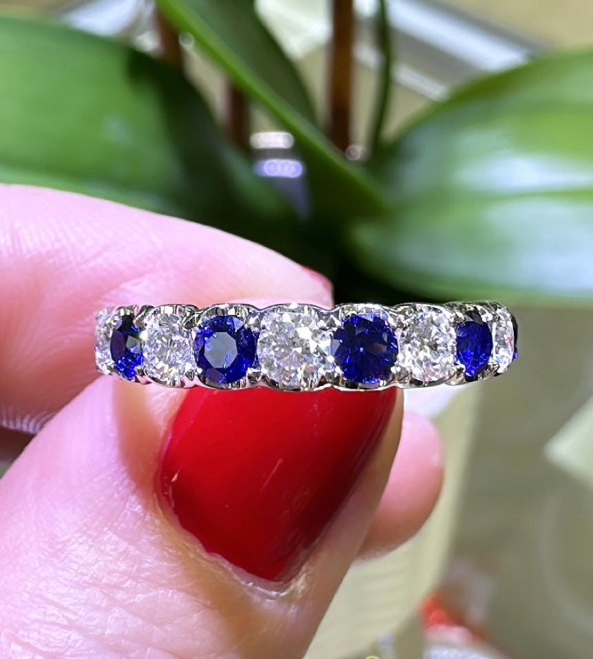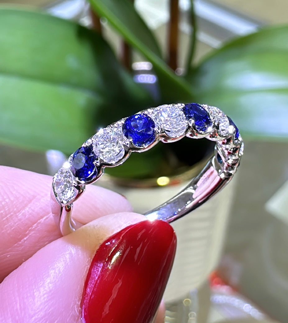 Experience the luxurious beauty of our 1.08ct tw blue sapphire alternating diamond ring. Crafted with precision and elegance, this stunning ring features a brilliant blue sapphire and sparkling diamonds that alternate seamlessly for a captivating effect. Elevate any outfit with this timeless piece that exudes sophistication and grace.