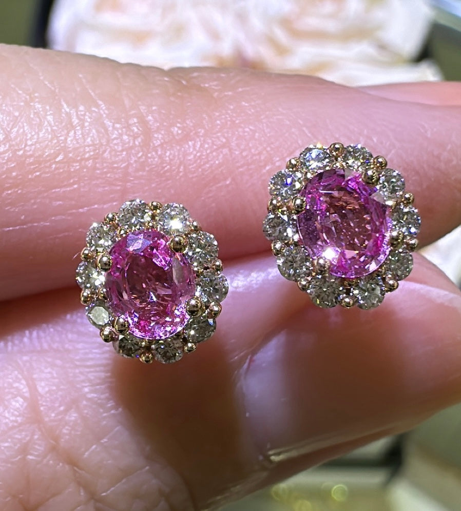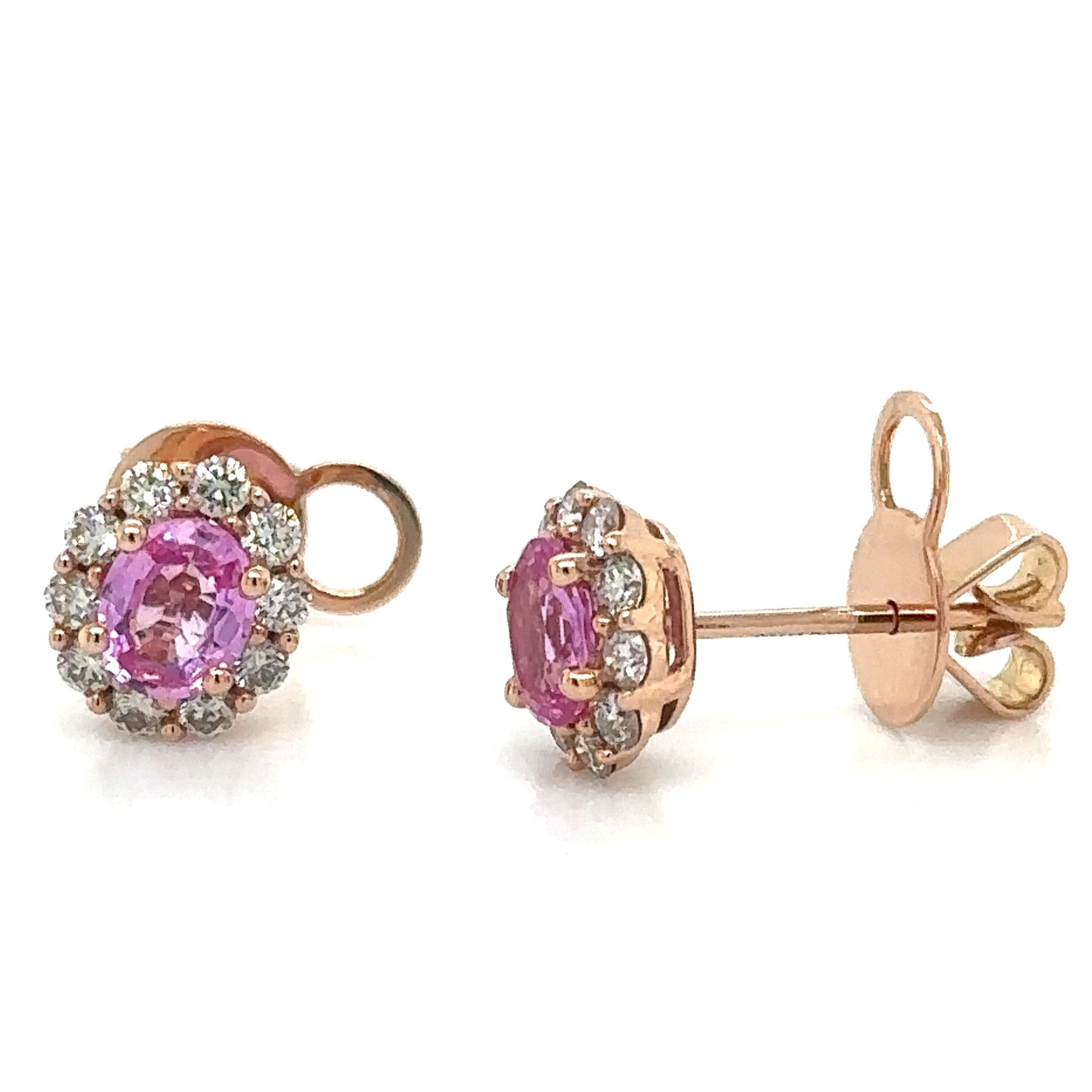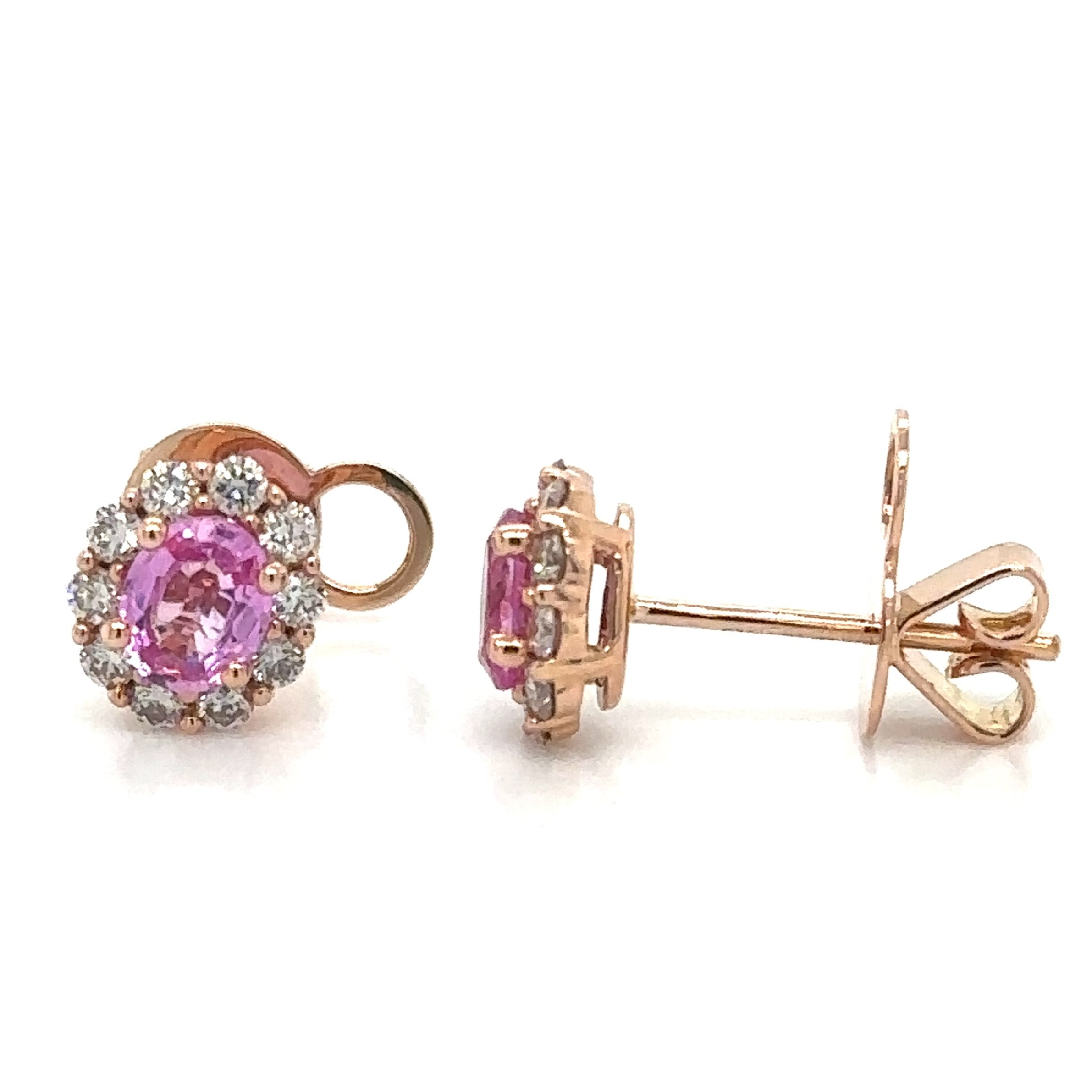 Add a touch of sophistication to any outfit with our stunning 1.19carat diamond halo and pink sapphire stud earrings. The beautiful combination of diamonds and pink sapphires adds a pop of color and elegance to these timeless earrings. Perfect for any occasion, these earrings are a must-have for any jewelry collection.