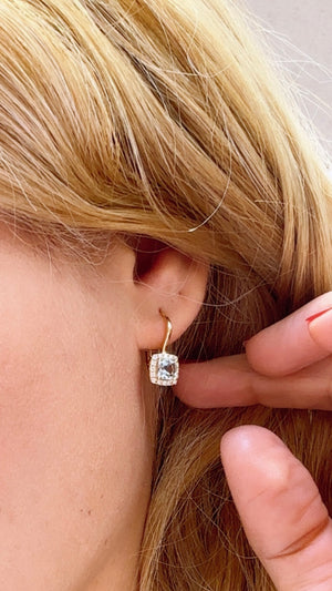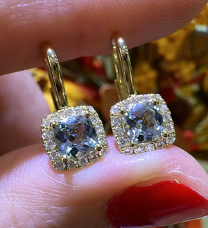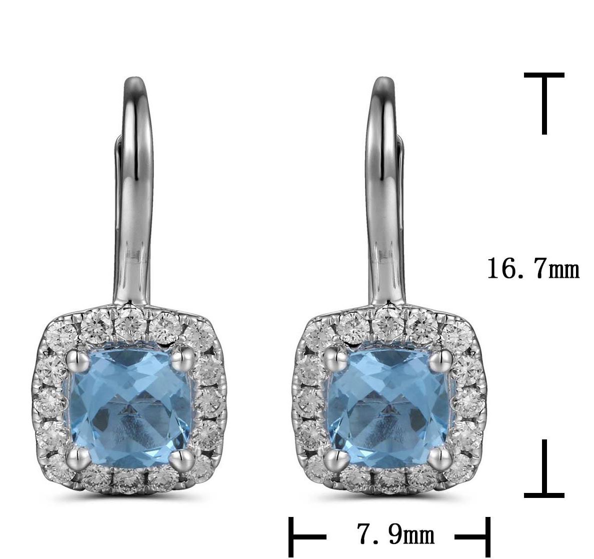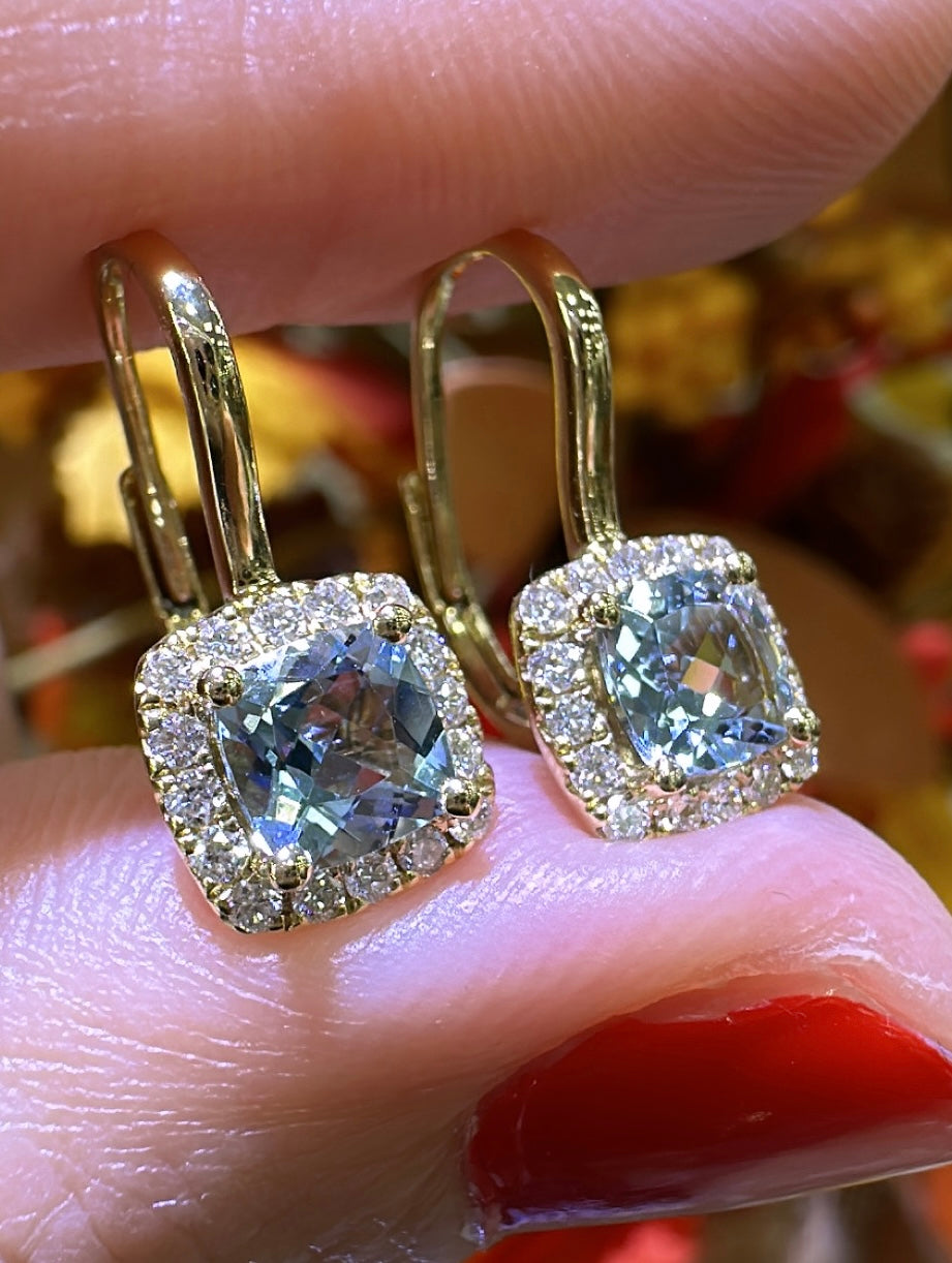 Indulge in the mesmerizing beauty of our 1.22ct tw aquamarine cushion-cut and diamond earrings. Crafted with delicate precision, these earrings showcase a sparkling combination of aquamarine and diamonds.
