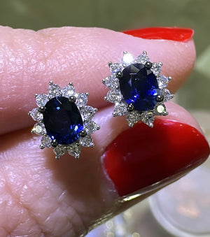 Enhance your style with these luxurious 1.32ct tw ladies diamond and blue sapphire stud earrings. The stunning combination of diamonds and sapphires will add a touch of elegance to any outfit. Elevate your look and make a statement with these beautiful earrings.
