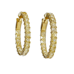 Unleash your inner radiance with our 11.60carat exquisite diamond asscher-cut canary fancy yellow diamond hoop earrings! Each diamond is carefully selected and meticulously set to create a dazzling display of brilliance. Elevate any outfit with these stunning earrings, a must-have for any jewelry collection.