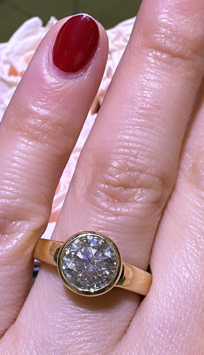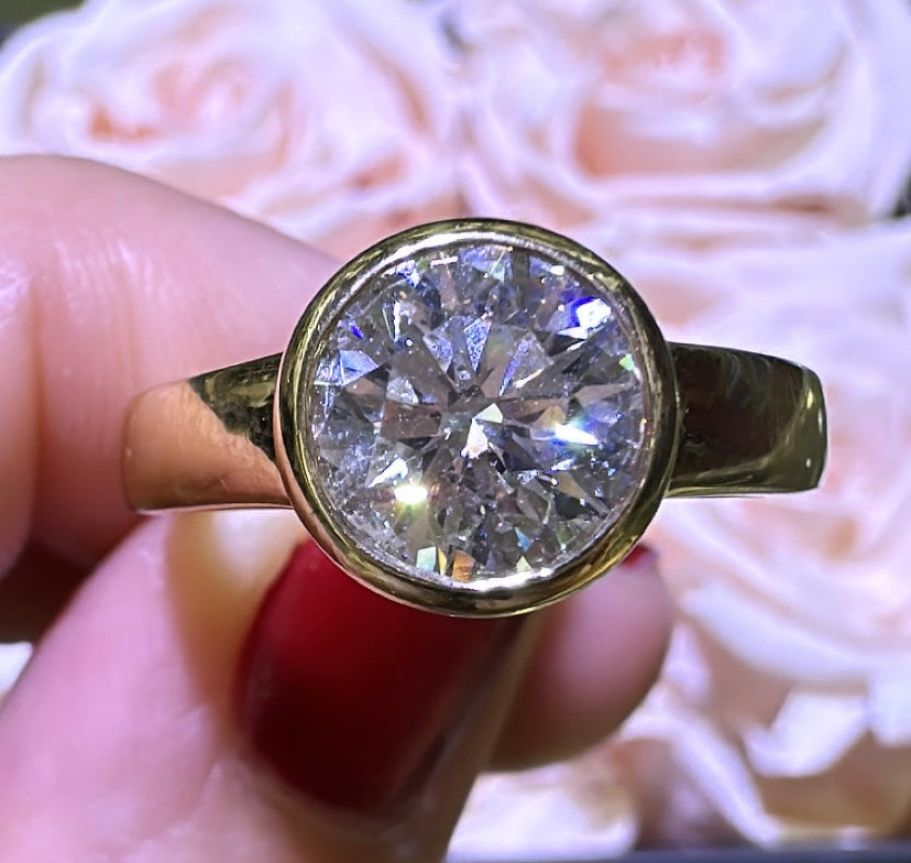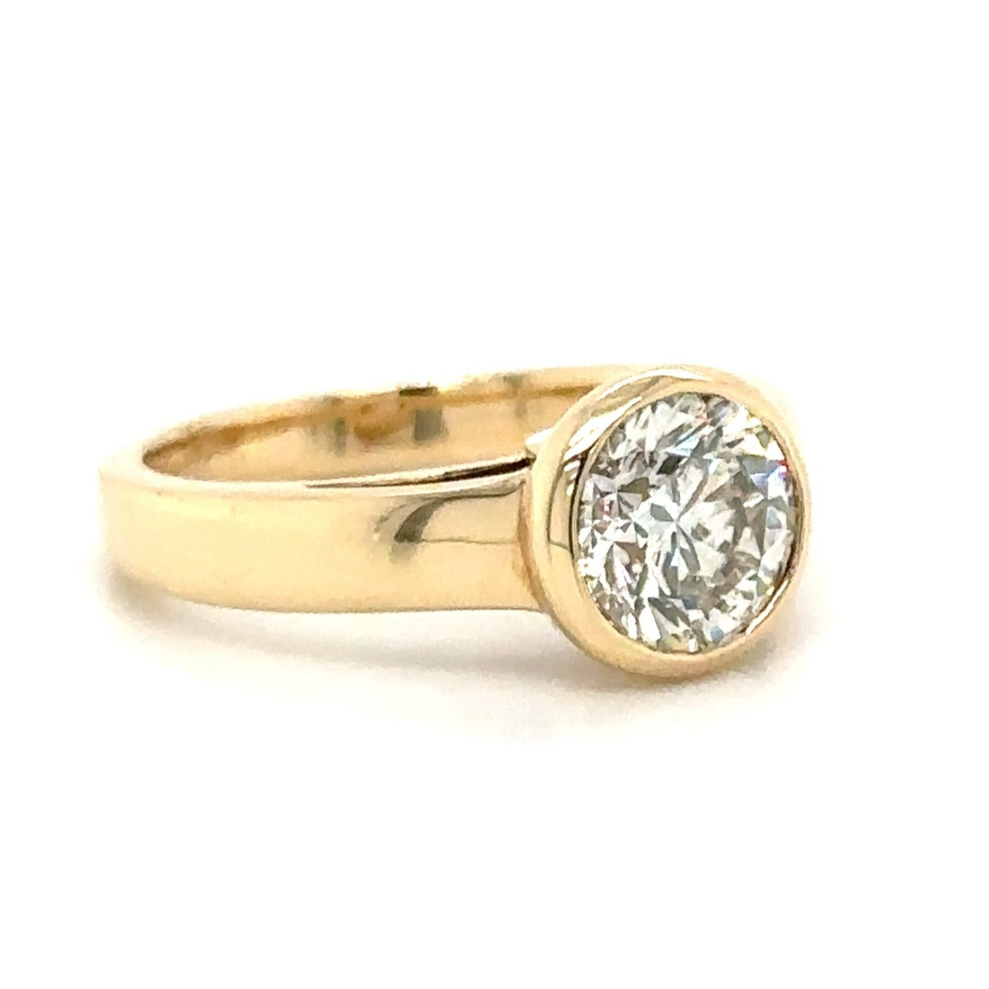 This stunning 2.01 carat bezel set diamond engagement ring will take your loved one's breath away. Featuring a beautiful bezel setting, this ring exudes elegance and style. The perfect symbol of your enduring love and commitment. Don't wait, make their dream ring a reality!