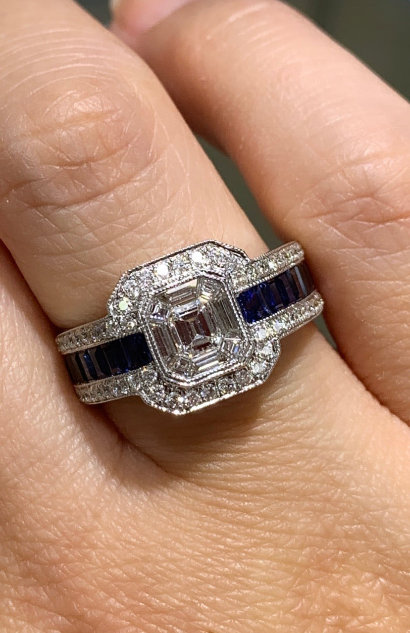 Sapphire Diamond Ring Art Deco