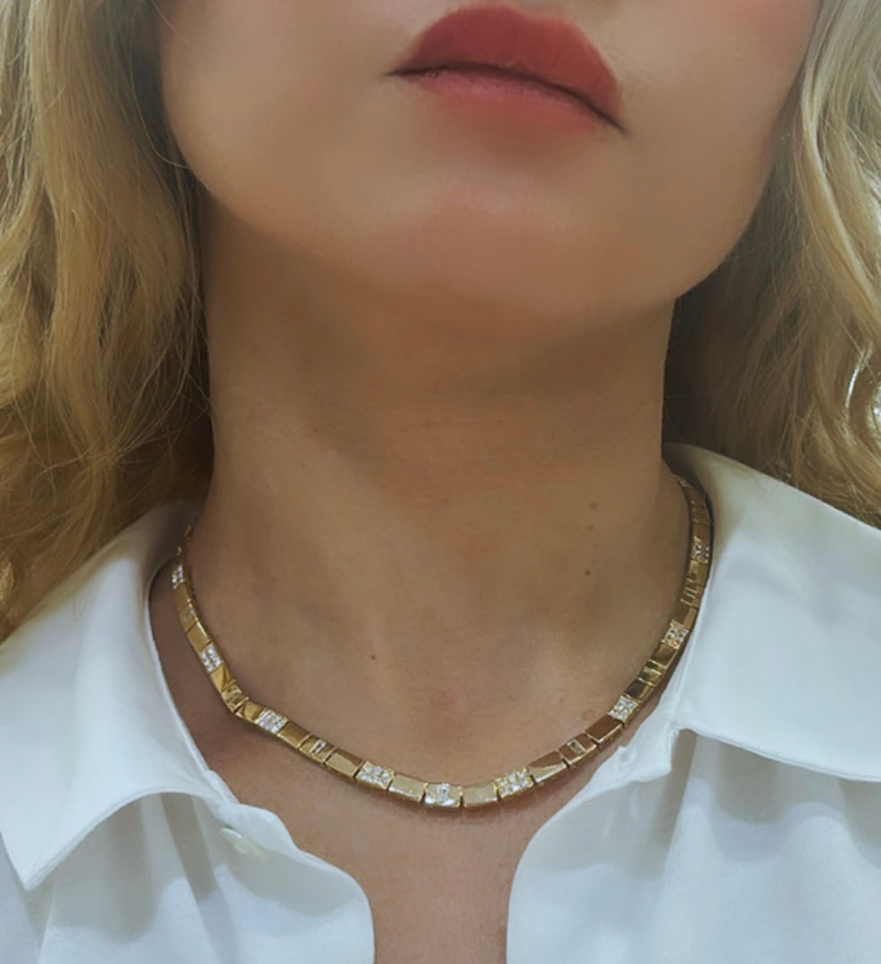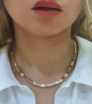 Elevate your style with our stunning 2.37ct tw diamond statement choker necklace. The perfect accessory for any occasion, this necklace exudes elegance and sophistication. With 2.37 total carats of dazzling diamonds, it will add a touch of luxury to any outfit. A must-have for those who believe in the power of timeless beauty.