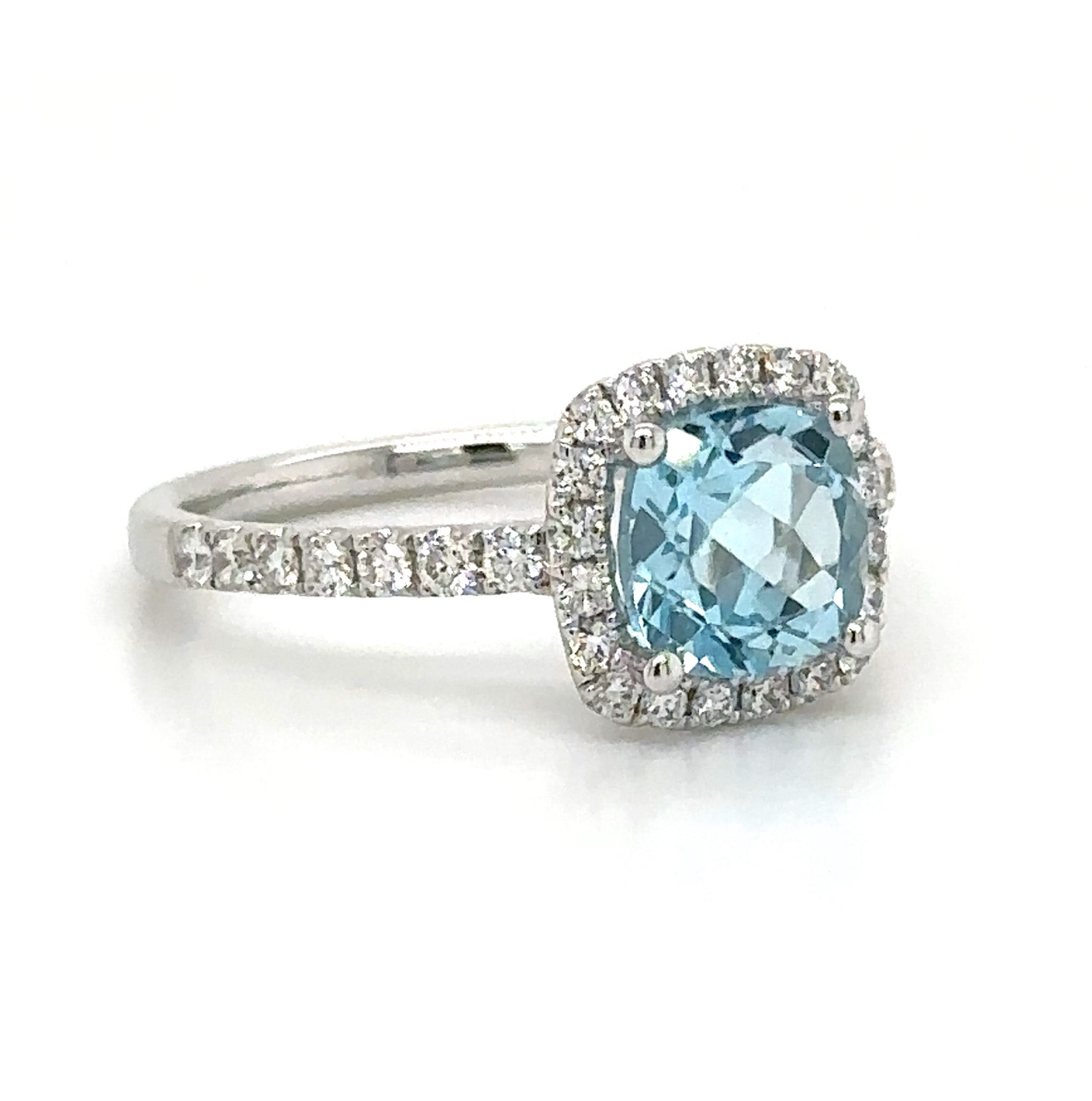 Experience the captivating beauty of our 2.58ct tw blue topaz & diamond ring. The stunning blue topaz stones paired with sparkling diamonds create a luxurious and eye-catching piece. Elevate any outfit with this elegant and timeless ring.