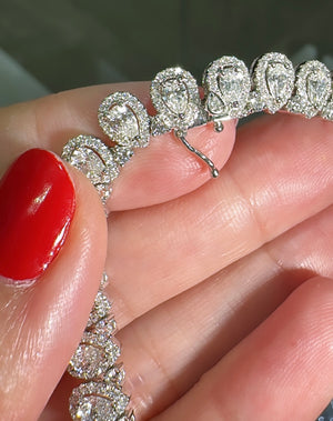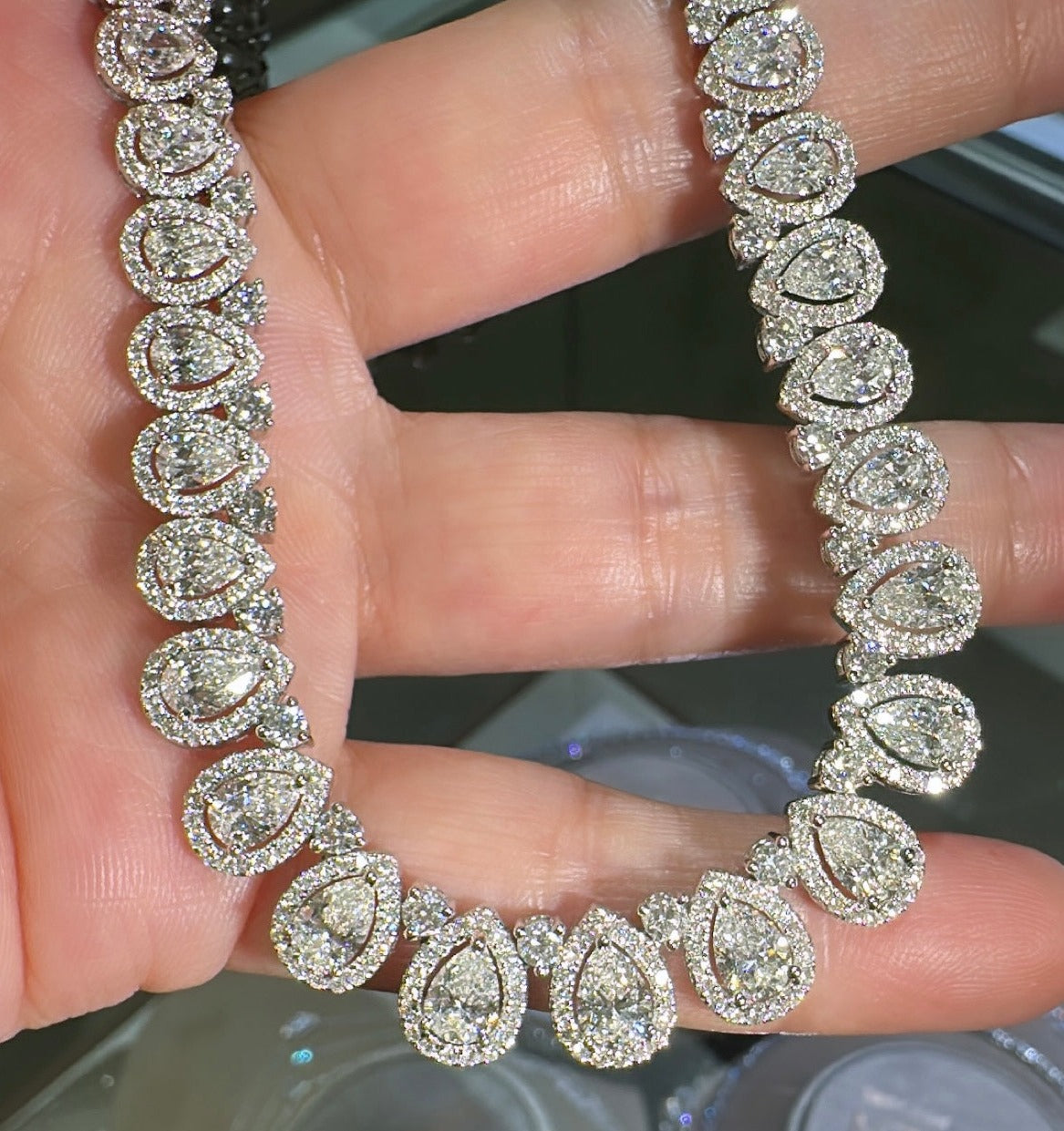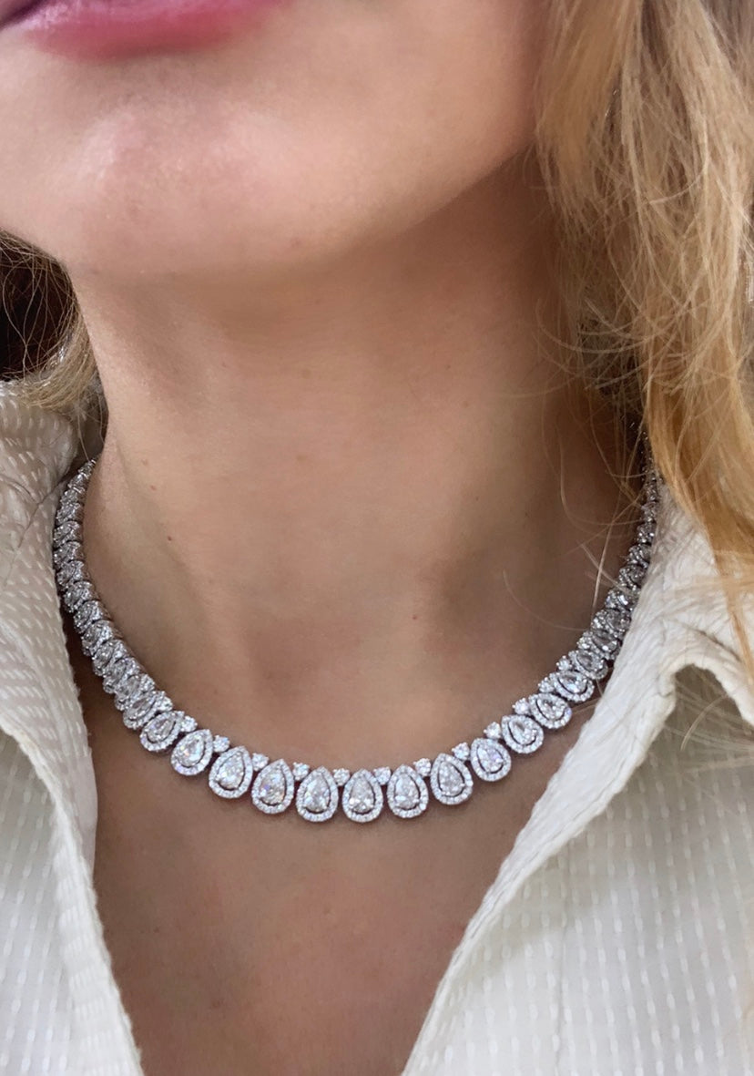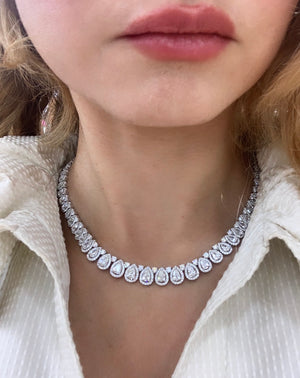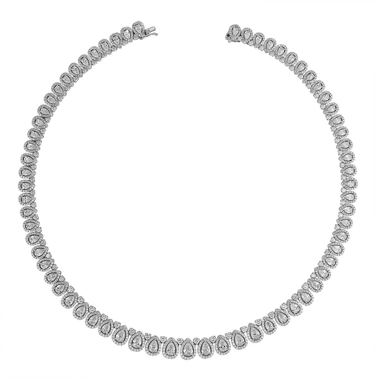 Experience luxurious elegance with this 20.74ct tw pear shape natural earth-mined diamond statement necklace. Crafted with exquisite attention to detail, this beautiful necklace is sure to make a statement of sophistication and glamour. Be the envy of all with this stunning, one-of-a-kind piece!
