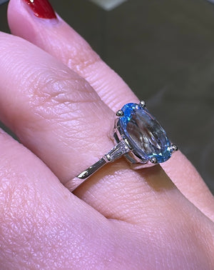3.53ct Light Blue Topaz Elongated Oval with Diamonds
