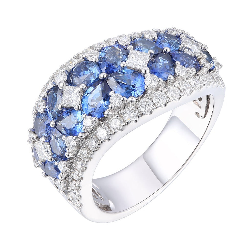 Surround yourself with elegance with this 3.91carat ladies diamond and blue sapphire ring. Crafted with meticulous attention to detail, this stunning piece is sure to turn heads. Its sparkle and vibrant hue is sure to take your breath away! Make a statement with this sophisticated yet dazzling ring.