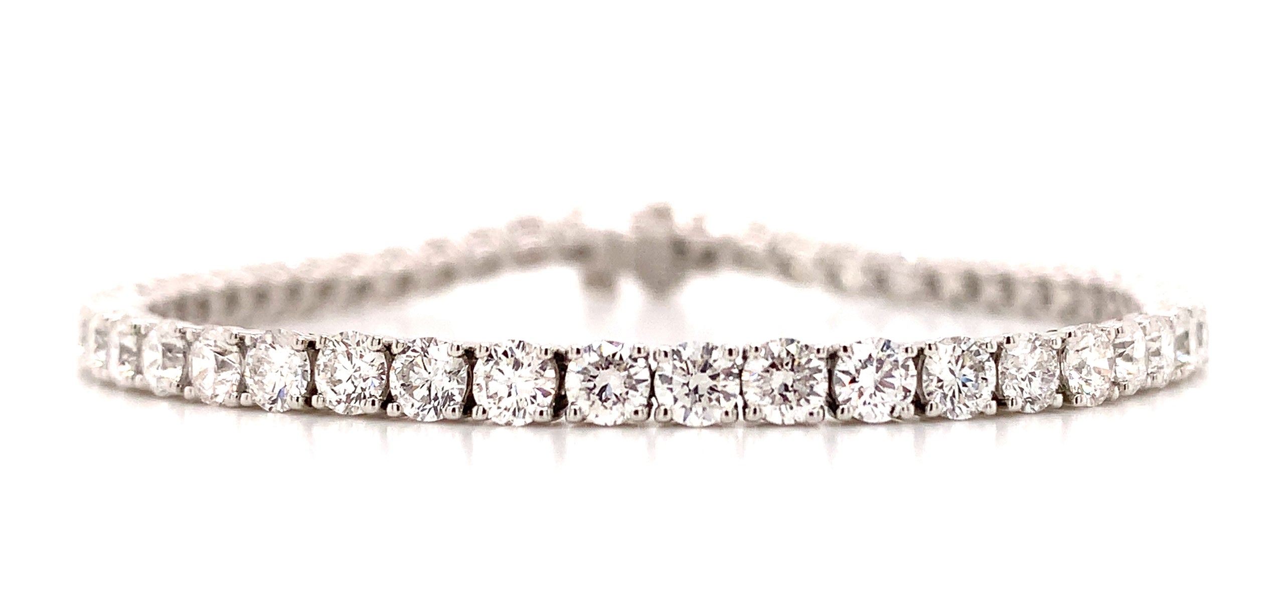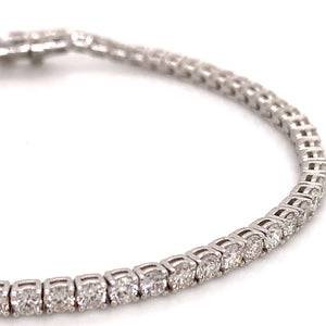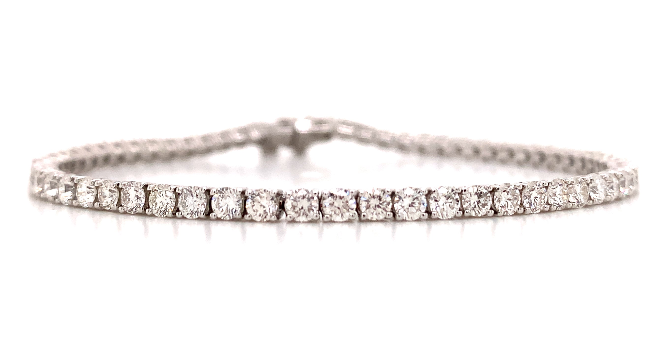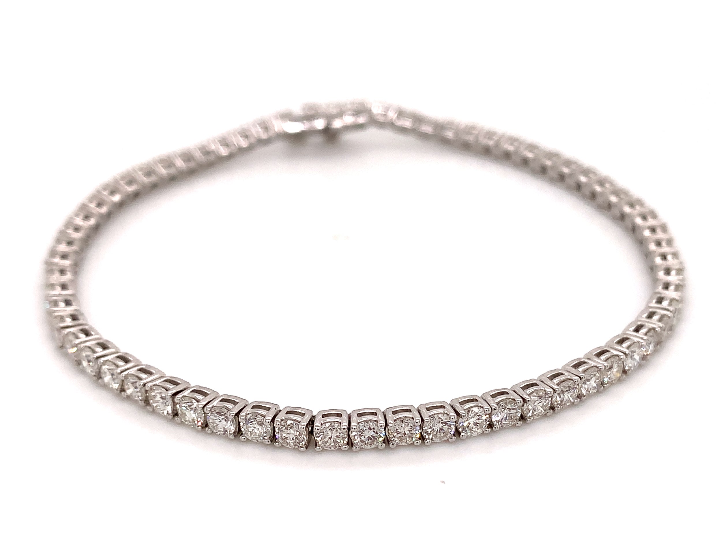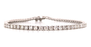 Splendid 4.06carats diamond tennis bracelet will make her shine with glory once you put it on her wrist. Absolutely gorgeous setting and with round diamonds will sit comfortably on her wrist without ever breaking.