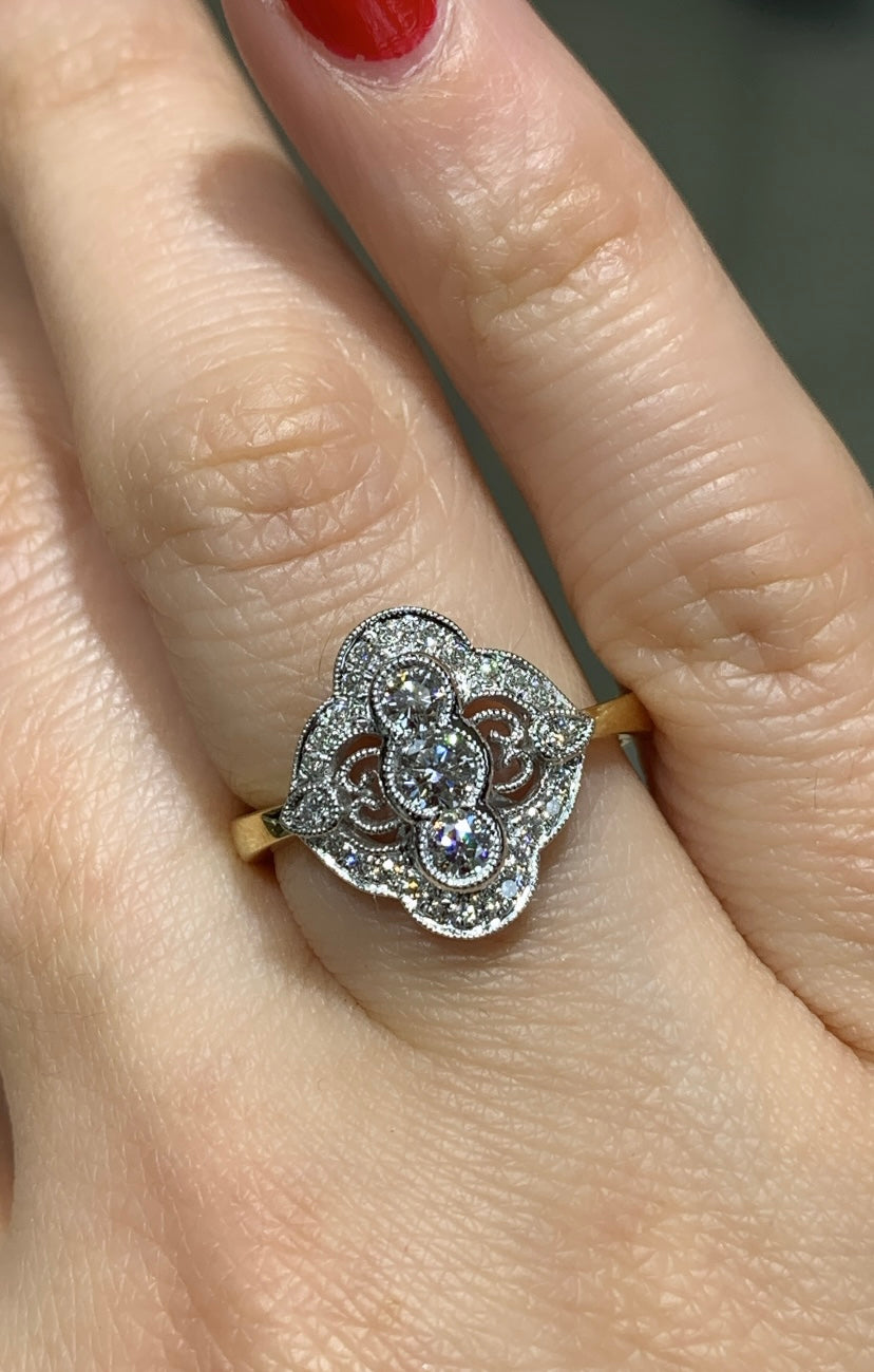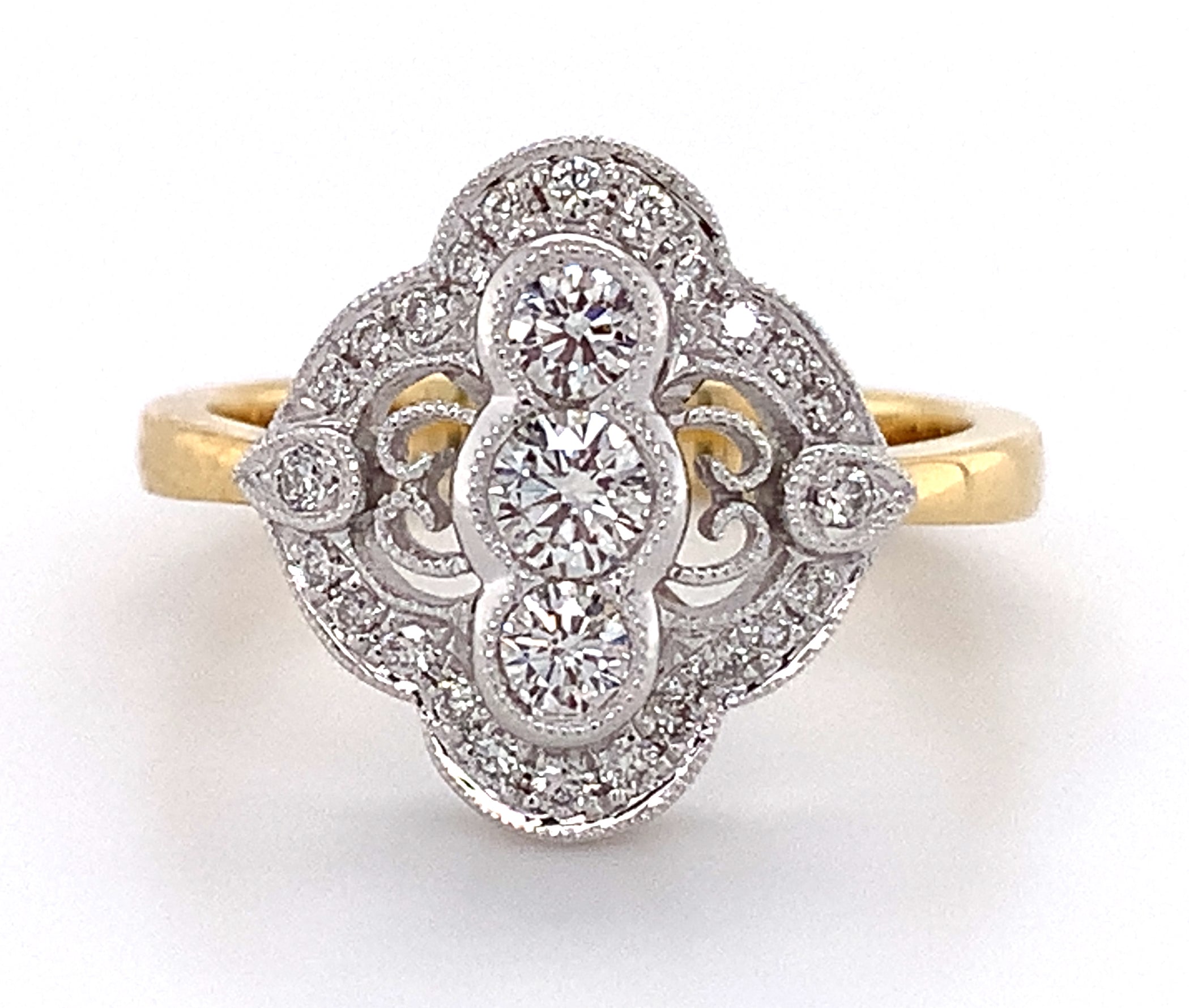 Unleash the timeless elegance of our antique inspired 0.49ctw diamond ring. Crafted with passion and attention to detail, this ring features stunning diamonds that shine with an old-world charm. Elevate any outfit with this dazzling piece and make a statement that lasts a lifetime.