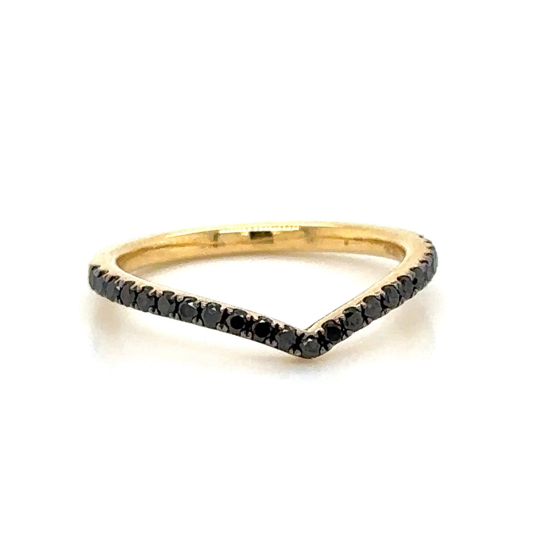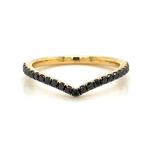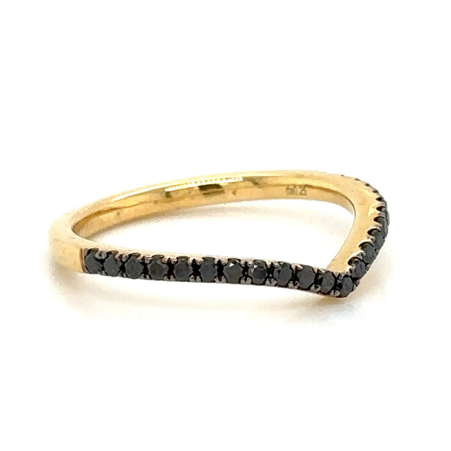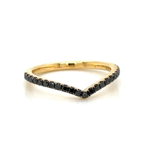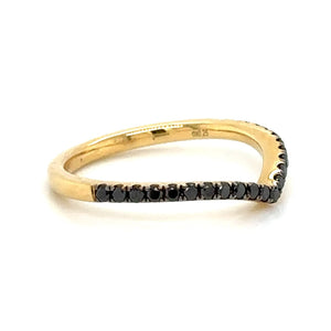 Elevate your style with our black diamond curved eternity band ring. This stunning band features black diamonds set in black rhodium for a sleek and modern look. The curved design adds dimension and elegance, making it the perfect addition to any jewelry collection. Make a statement with this unique and luxurious piece!